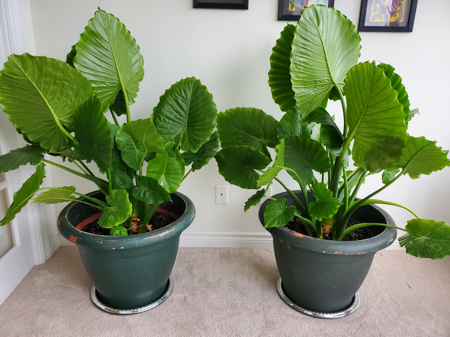 2 Huge Alocasia Odora (Elephant Ear) plants in rustic 21” plastic pots. $100 each or $170 for 2.