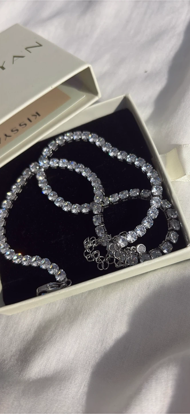 Elegant cubic zirconia tennis necklace in silver-tone finish — sparkles beautifully and comes in a gift-ready box🎁!