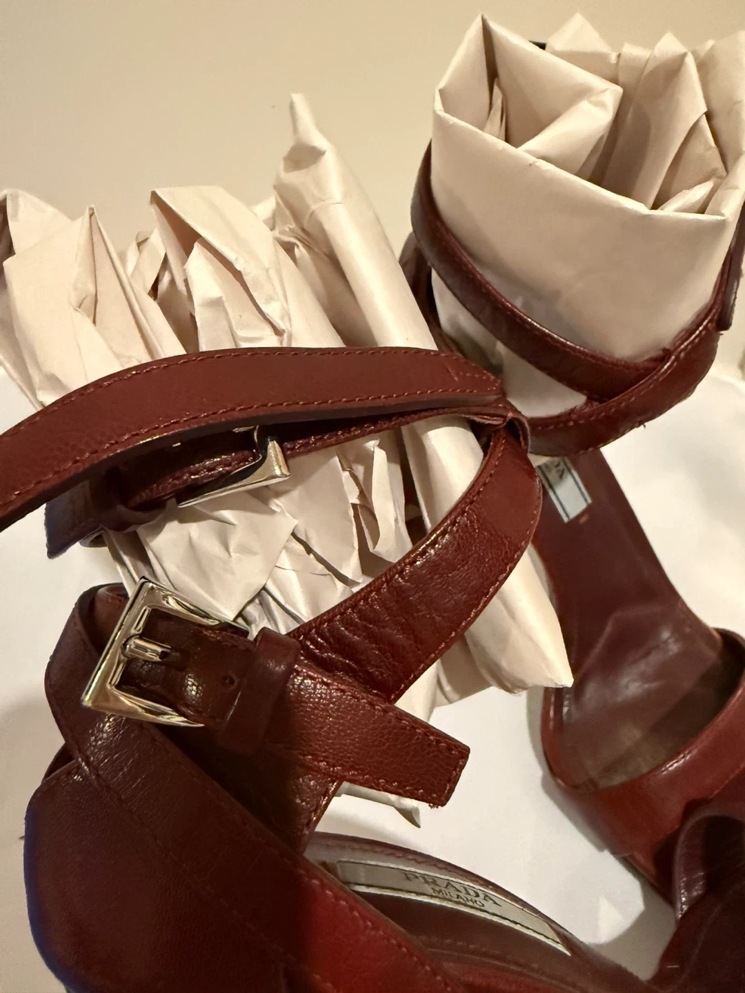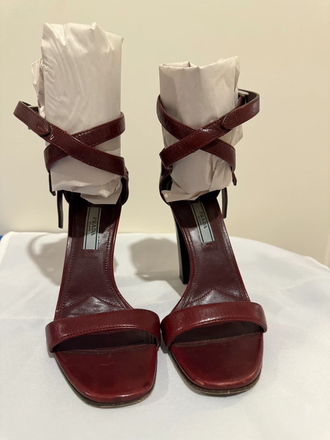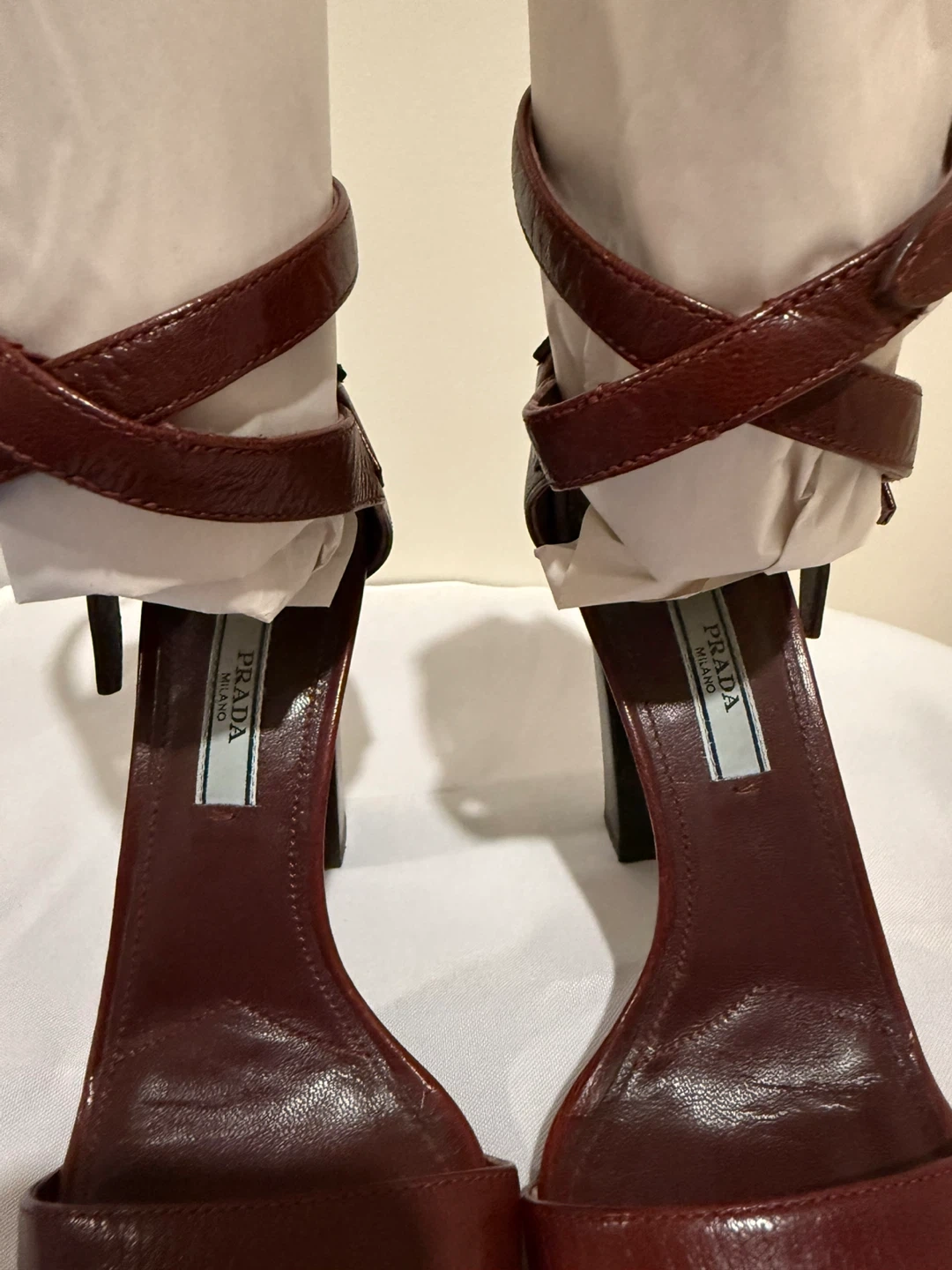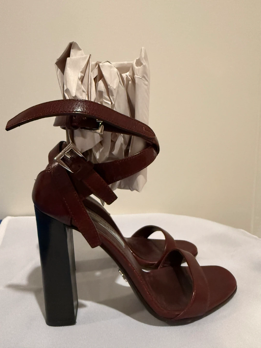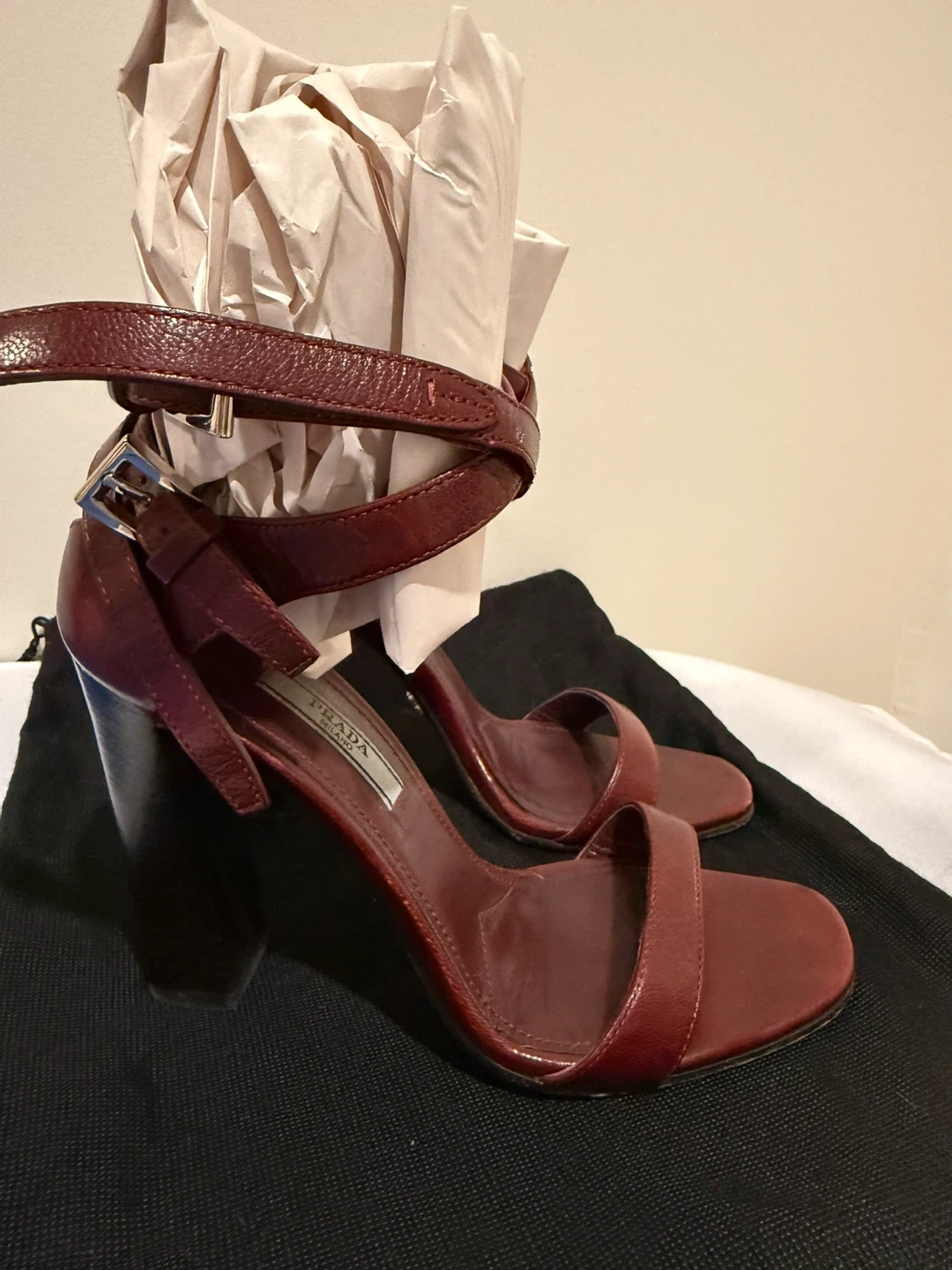 Prada Leather Block Heel Sandals