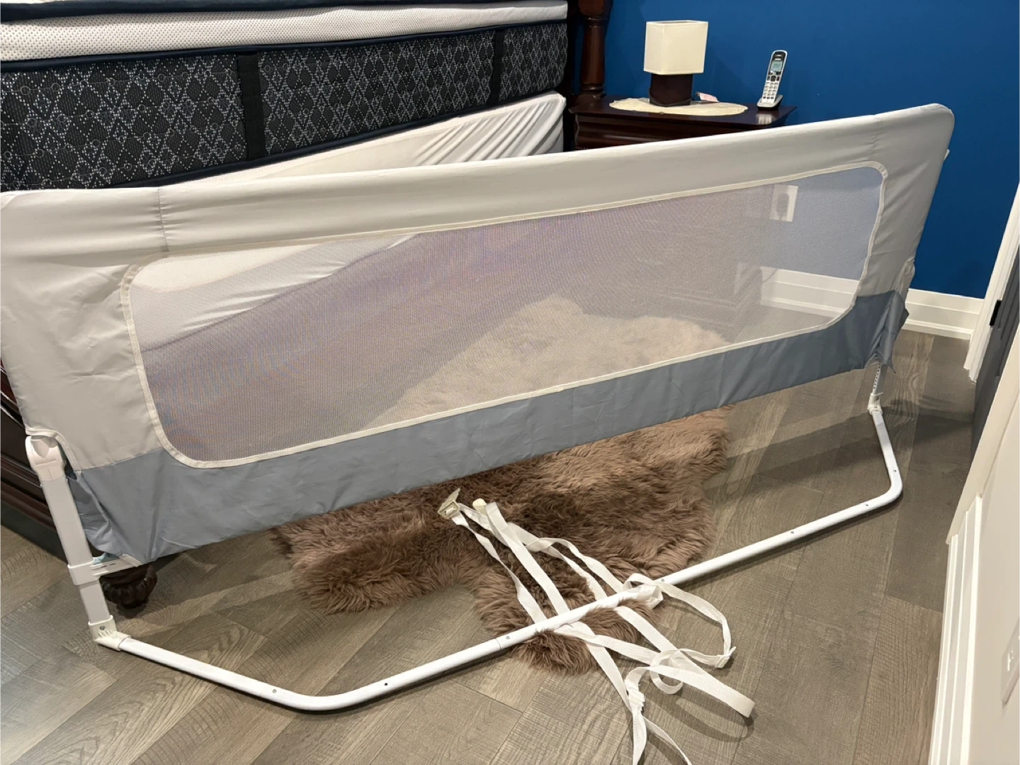 Selling a foldable bed rail in great condition! It's perfect for keeping your little one safe and secure while they sleep. Easy to install and folds down for convenient storage when not in use. It's a must-have for parents transitioning their child to a bigger bed. Size is 80 inches by 60inches. It is for a queen size bed
