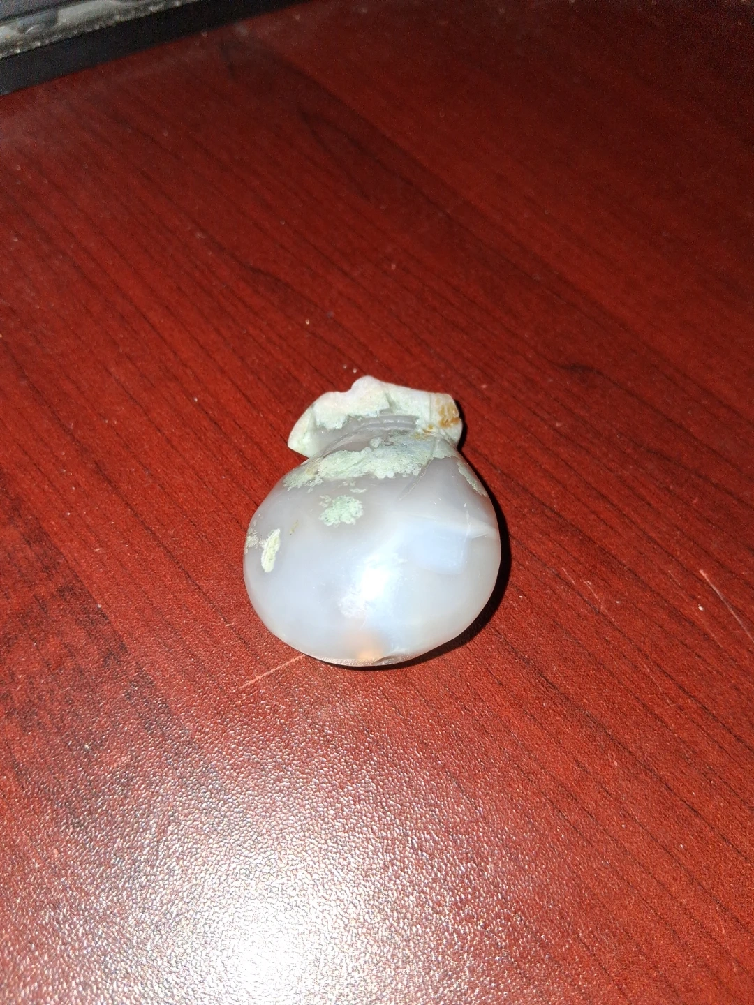 Here's a beautiful agate money bag or Santa's sac, whichever you prefer. It has a unique shape and interesting patterns. Great for collectors or anyone who appreciates natural stones!
