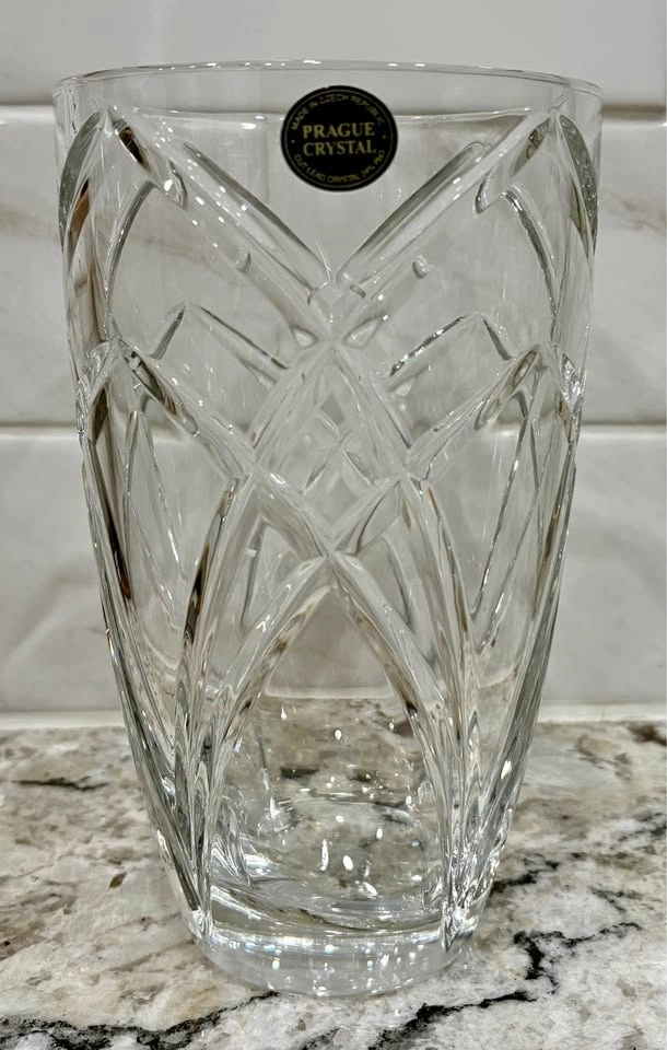 Beautiful large cut lead Chrystal Voz made in Czech Republic. This has been in my family probably close to 40 years. Only been used a couple of times, it has been displayed in the China cabinet almost the entire time. It is 8 inches tall by 5 inches wide at the top There are no chips, cracks or scratches of any kind, it is in pristine condition.