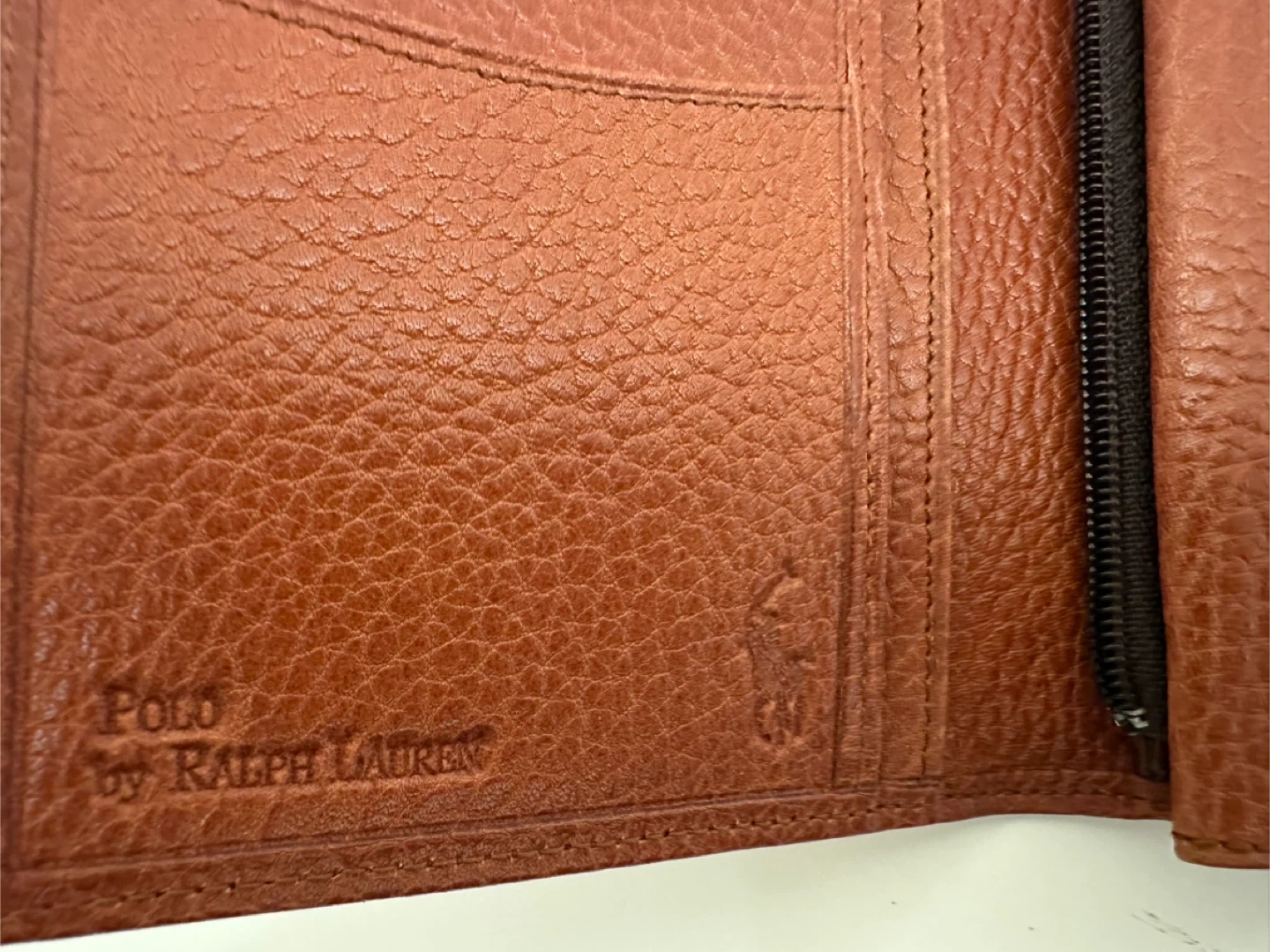 Selling a Polo by Ralph Lauren leather wallet. It's in great condition and has a classic, timeless look. The wallet measures approximately 7.5 inches in length. It's a beautiful brown color and made of high-quality leather