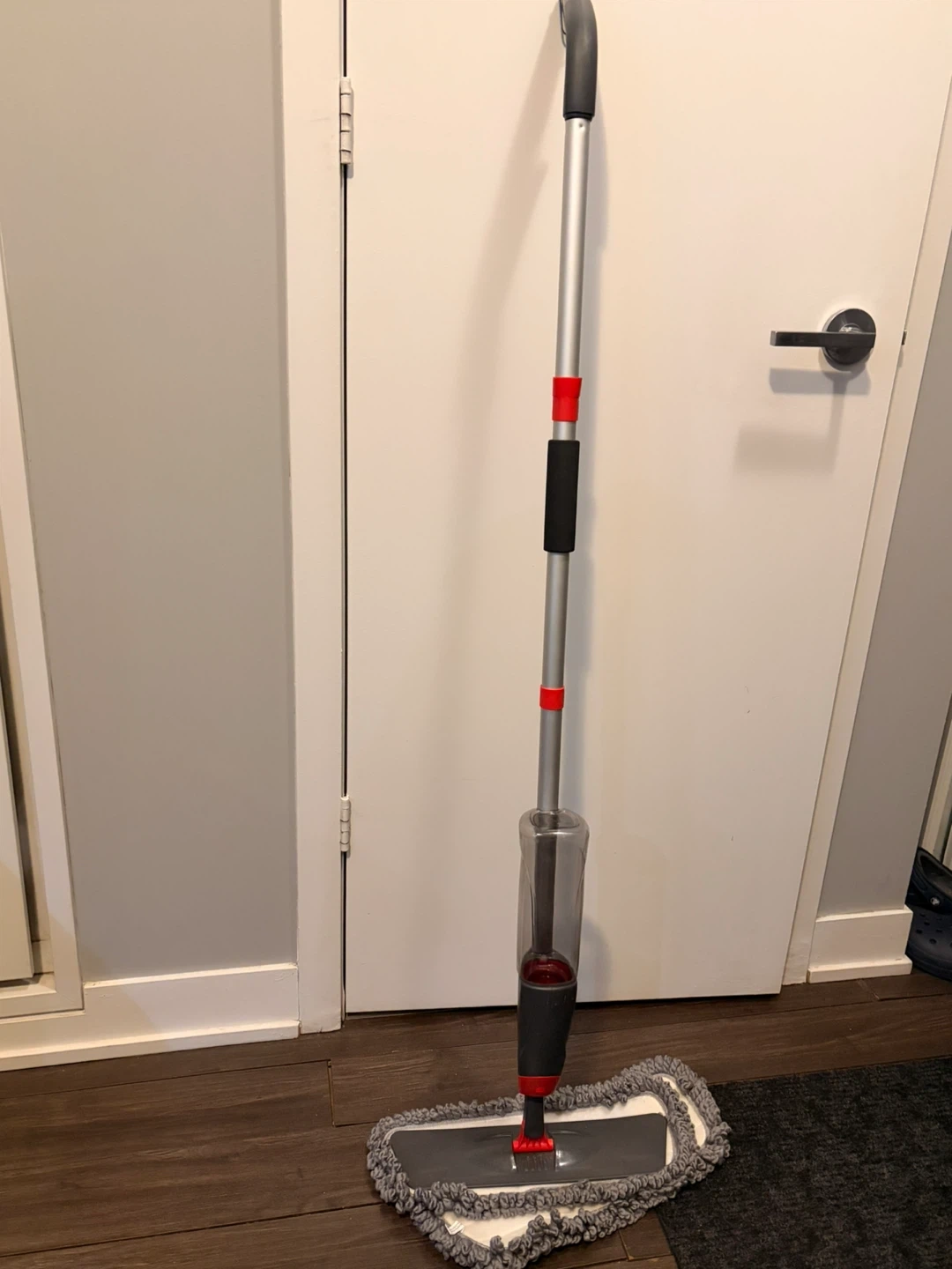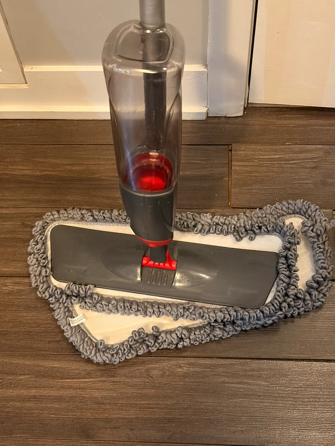 “Spray mop” that no longer sprays. The spray function fizzled out a while back so I was just using a separate spray bottle to wet the floor. Comes with 2 mop pads unused.
