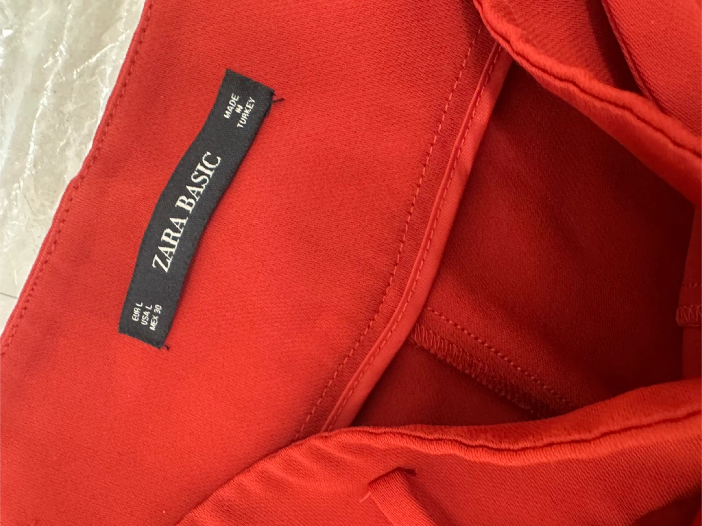Red Zara Basic trousers, size large. These are in great condition and would be a stylish addition to your wardrobe! They are made in Turkey.