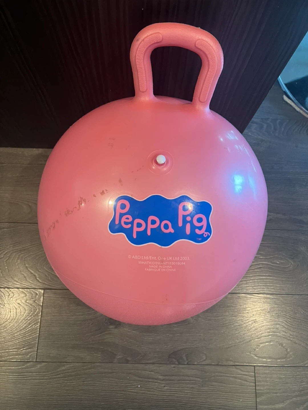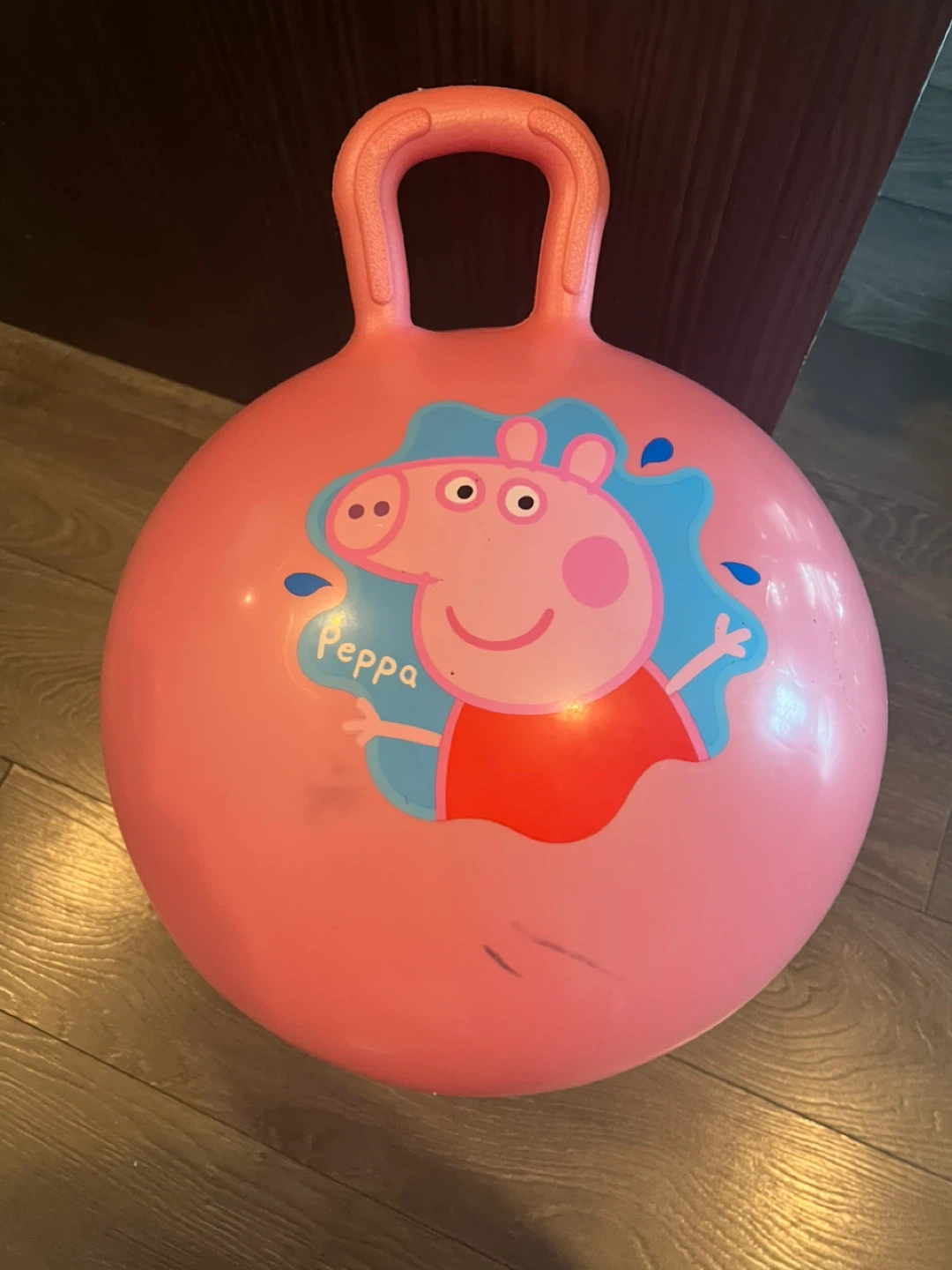 A fun Peppa Pig hopper ball for kids! It's pink and has the Peppa Pig logo on it. Perfect for bouncing around and getting some energy out