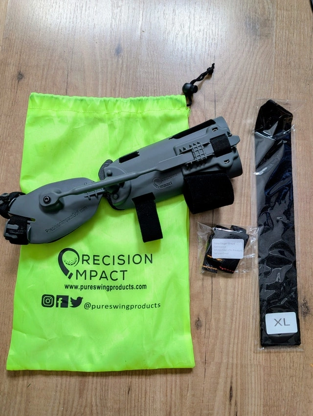 Training aid is as good as new. It would be a great Christmas gift to a golf enthusiast. One of the highest rated training aids of multiple highly rated YouTube golf instructors. Here is the link to the actual product: https://pureswingproducts.com/products/precision-impact I won't repeat the description, reviews...here. :)