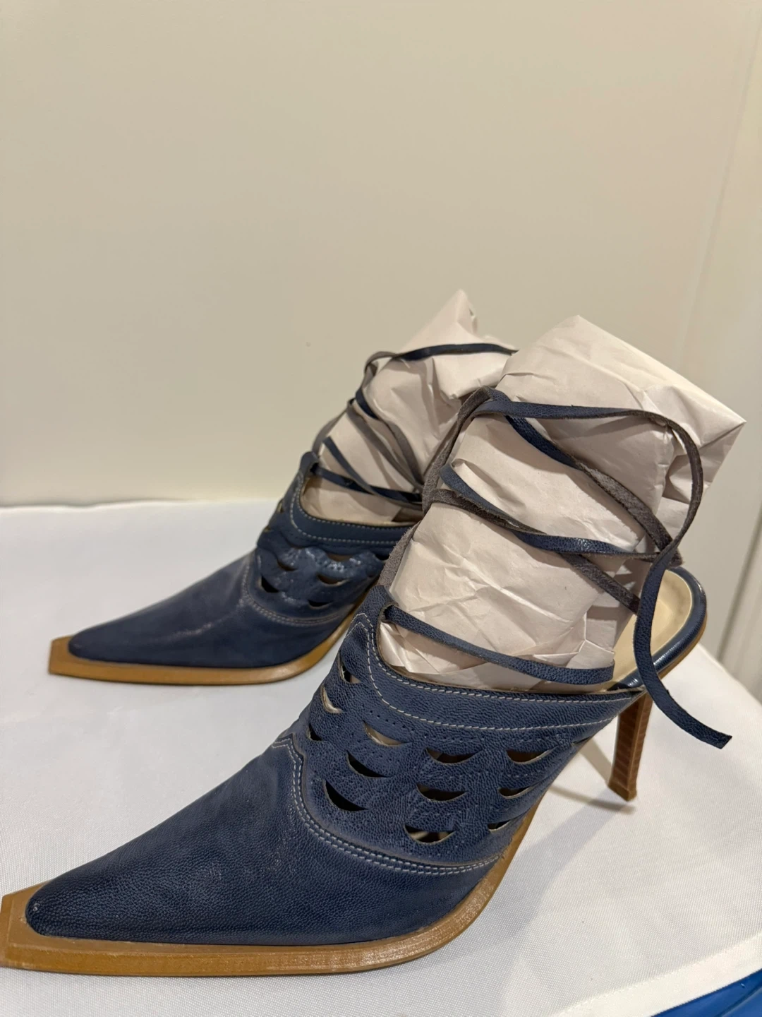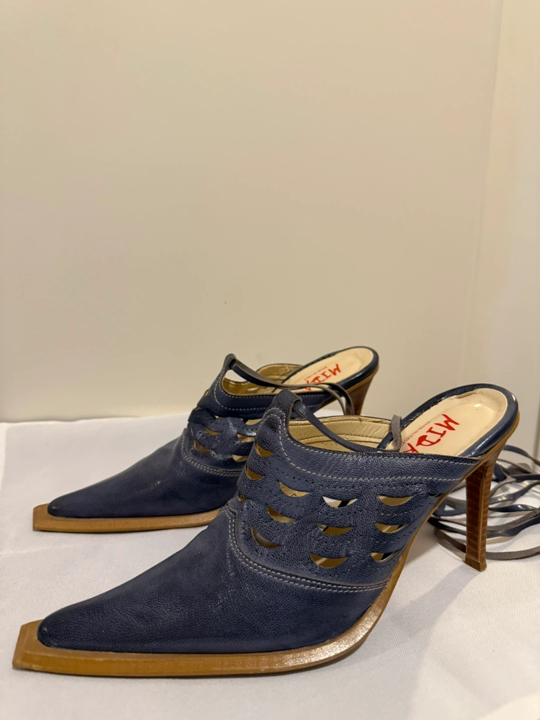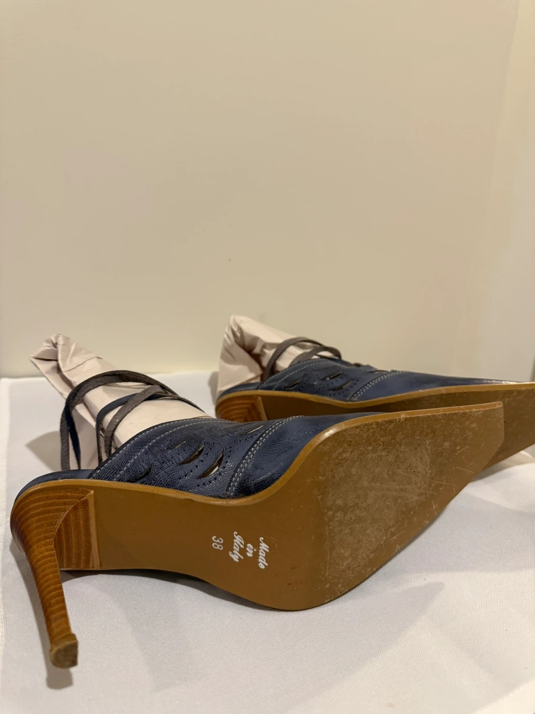 These are a pair of Mida heels from Italy, size 38. They are made in Italy and feature a unique cutout design. The heels are in good condition!