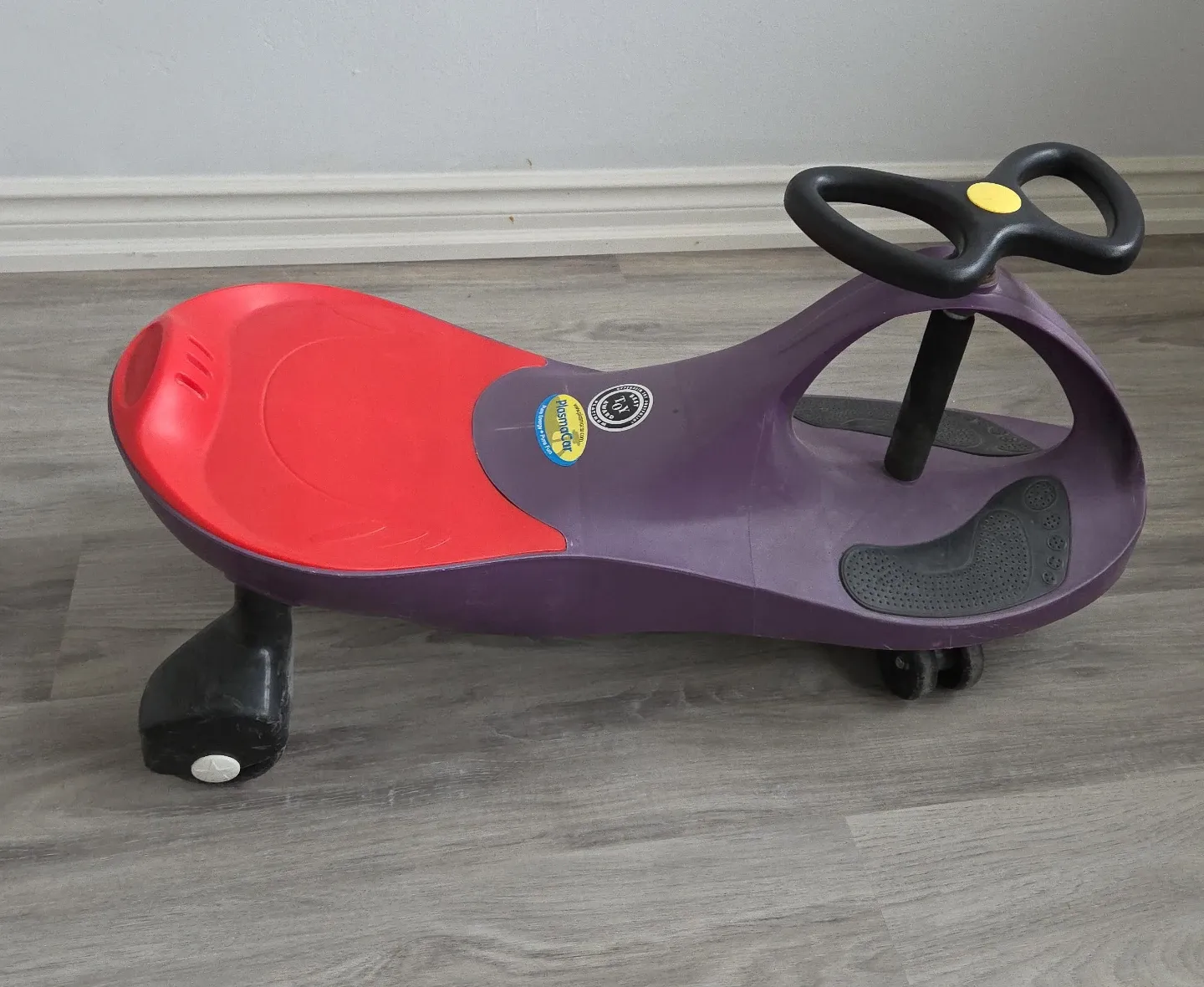 Selling a gently used PlasmaCar. It's a fun ride-on toy in purple and red! It has some signs of use, but it's still in good condition for lots of fun rides!