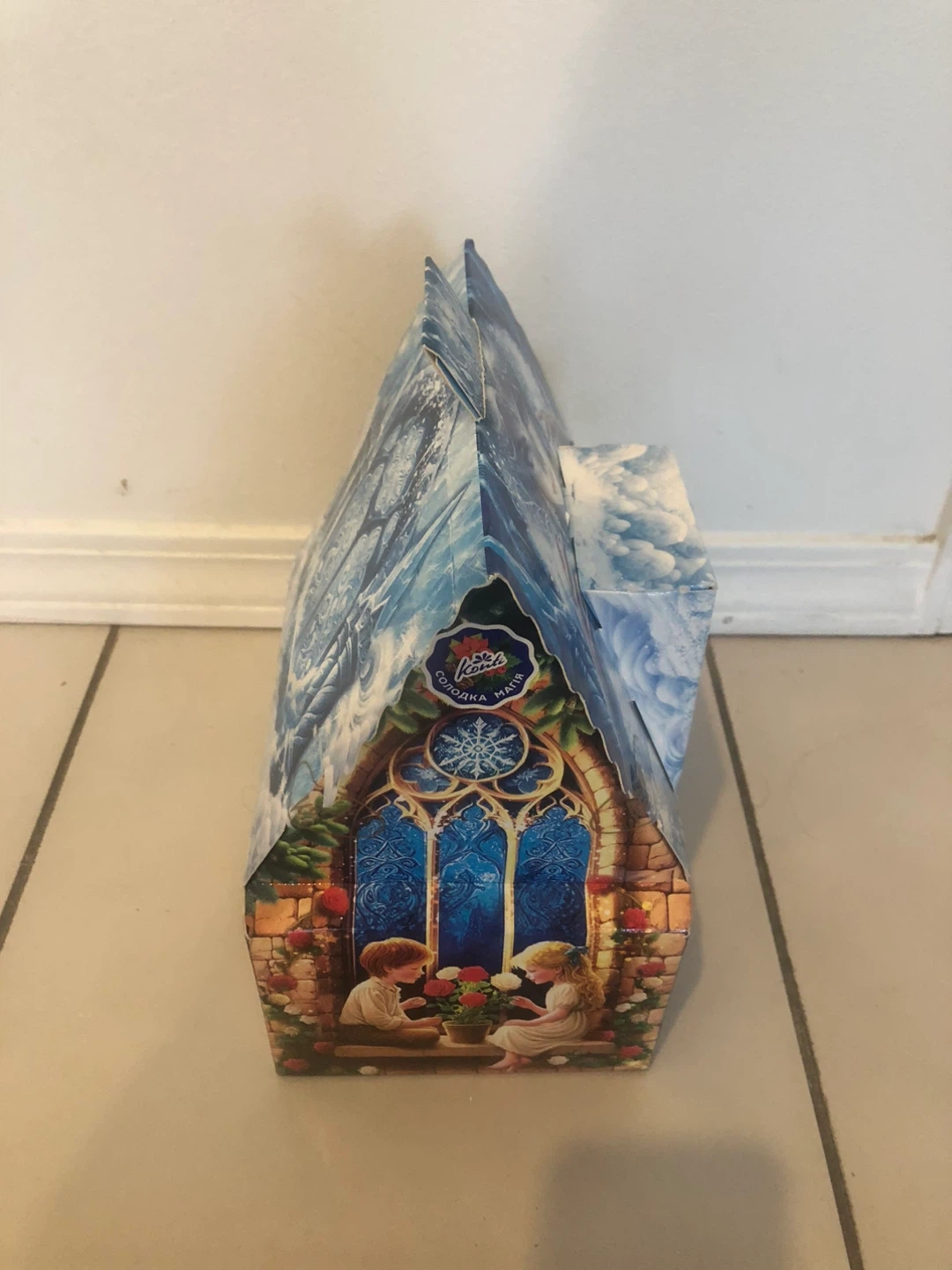 I opened the house to show what candies are in. This can be still put back.