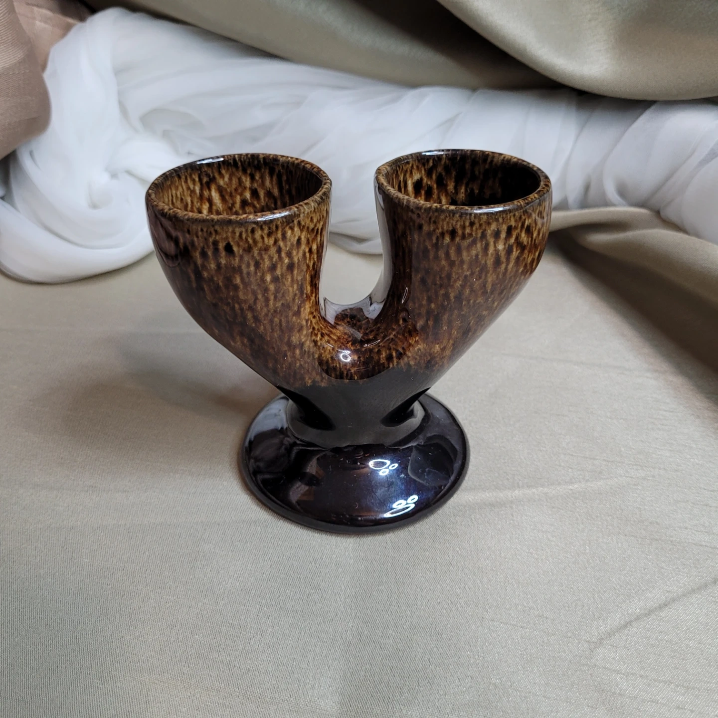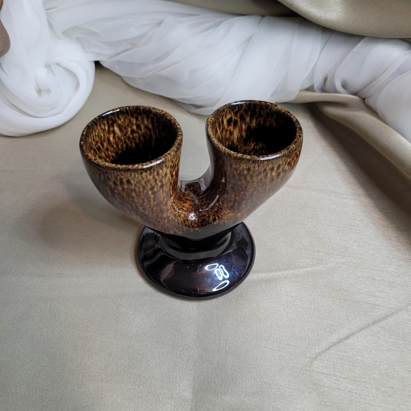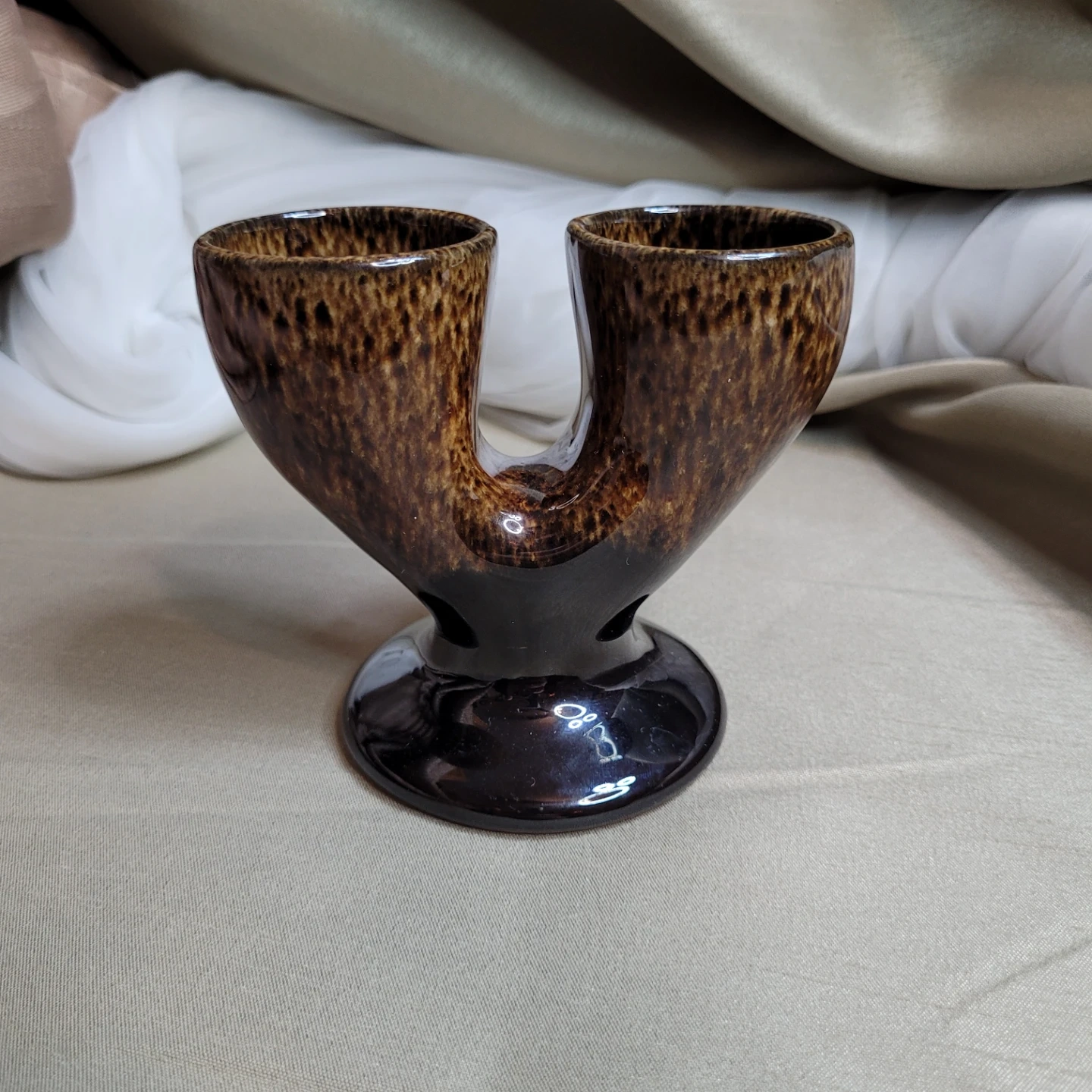 Vintage Glazed Pottery Double Egg Cup Holder