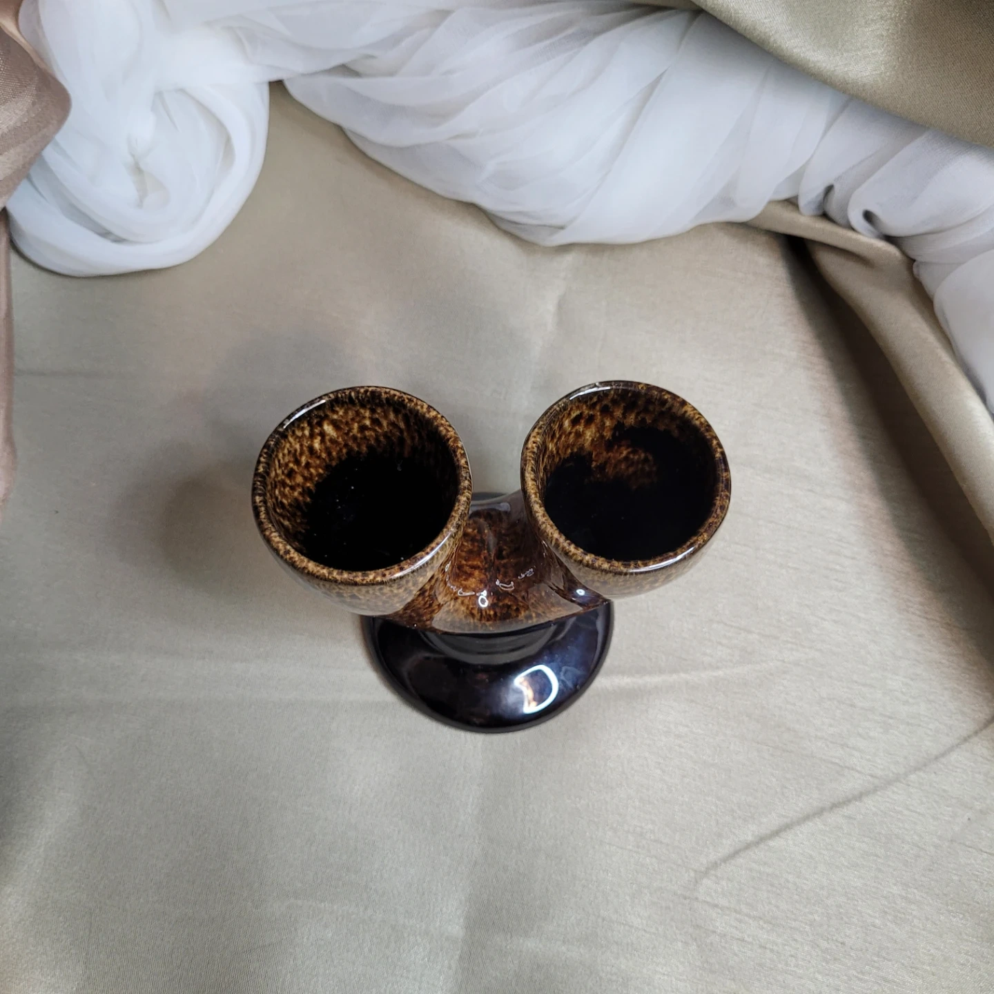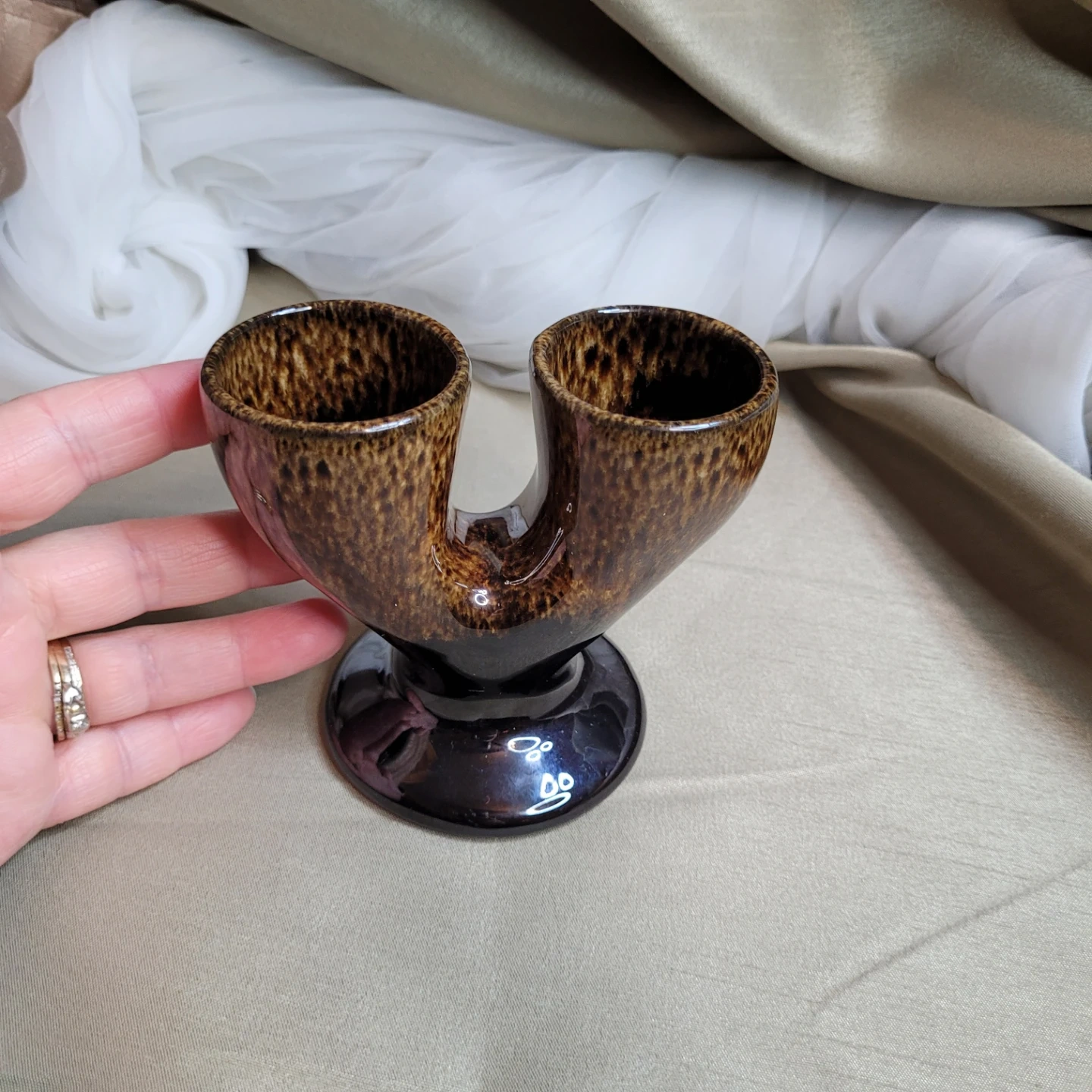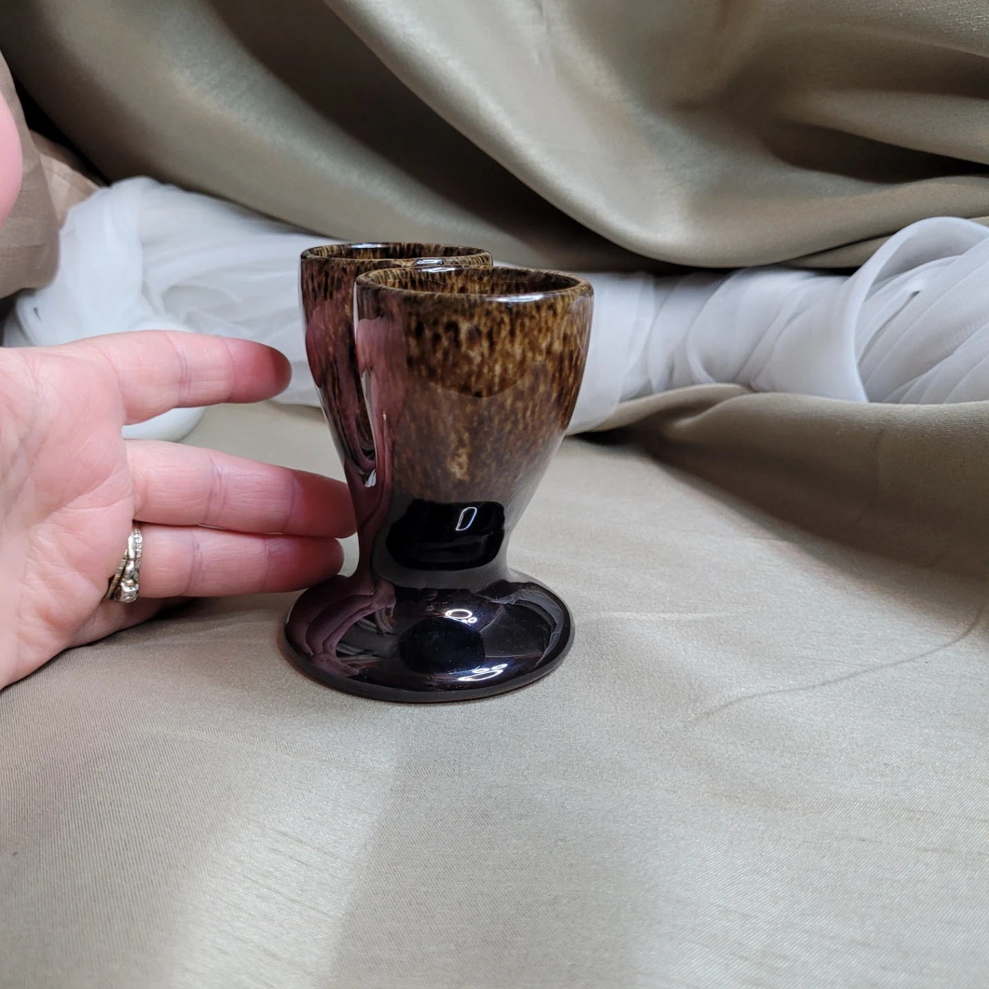 Vintage Glazed Pottery Double Egg Cup Holder