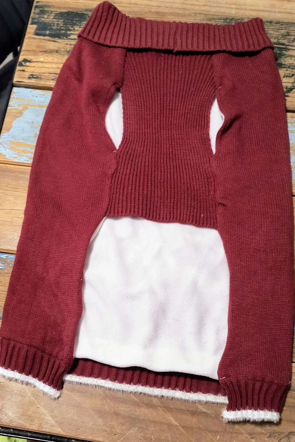 It's fully fleece-lined and has a leash opening at the back of the neck.