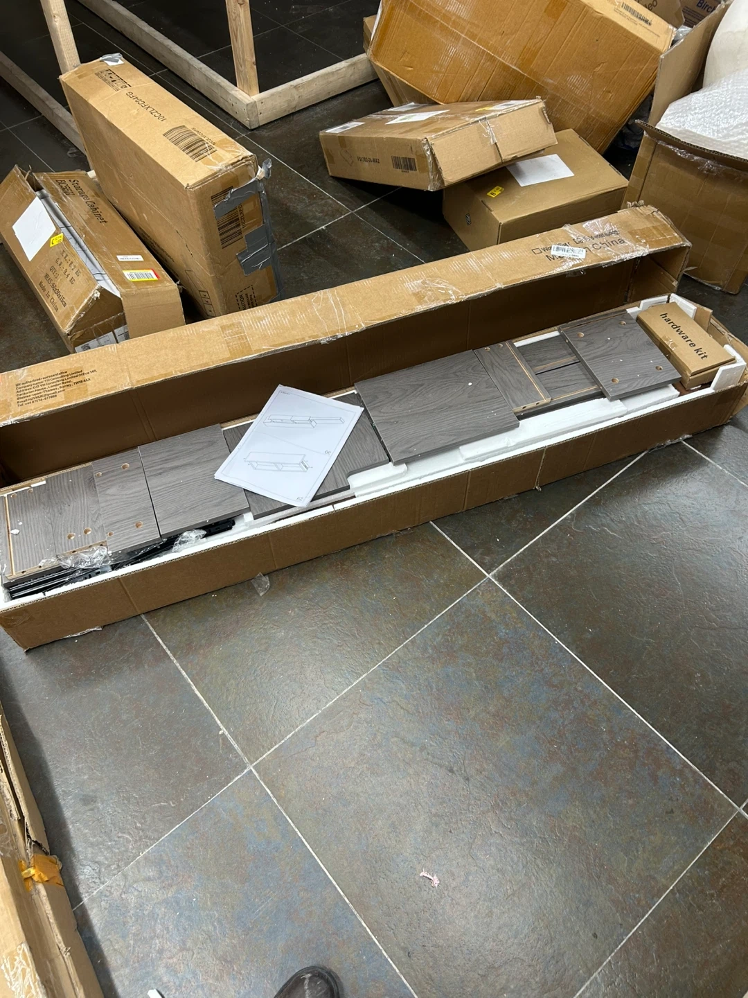 Selling a brand new TV stand in a stylish black walnut colour! It comes in its original box with all the necessary hardware and instructions for easy assembly. This unit will be a great addition to any living room