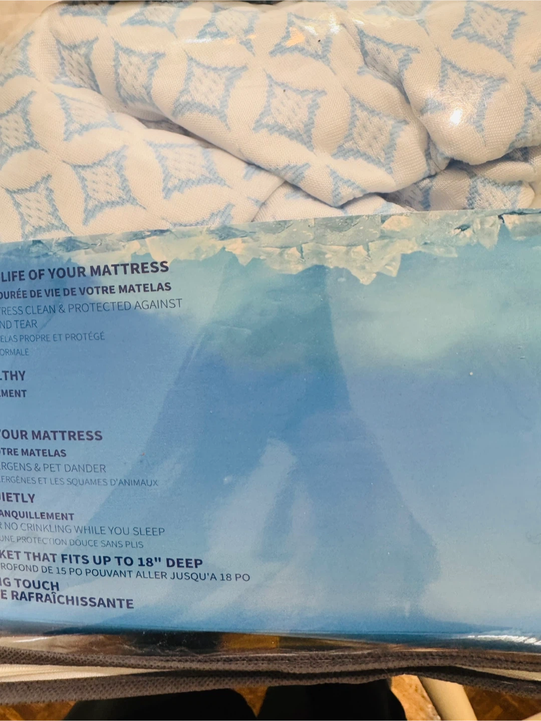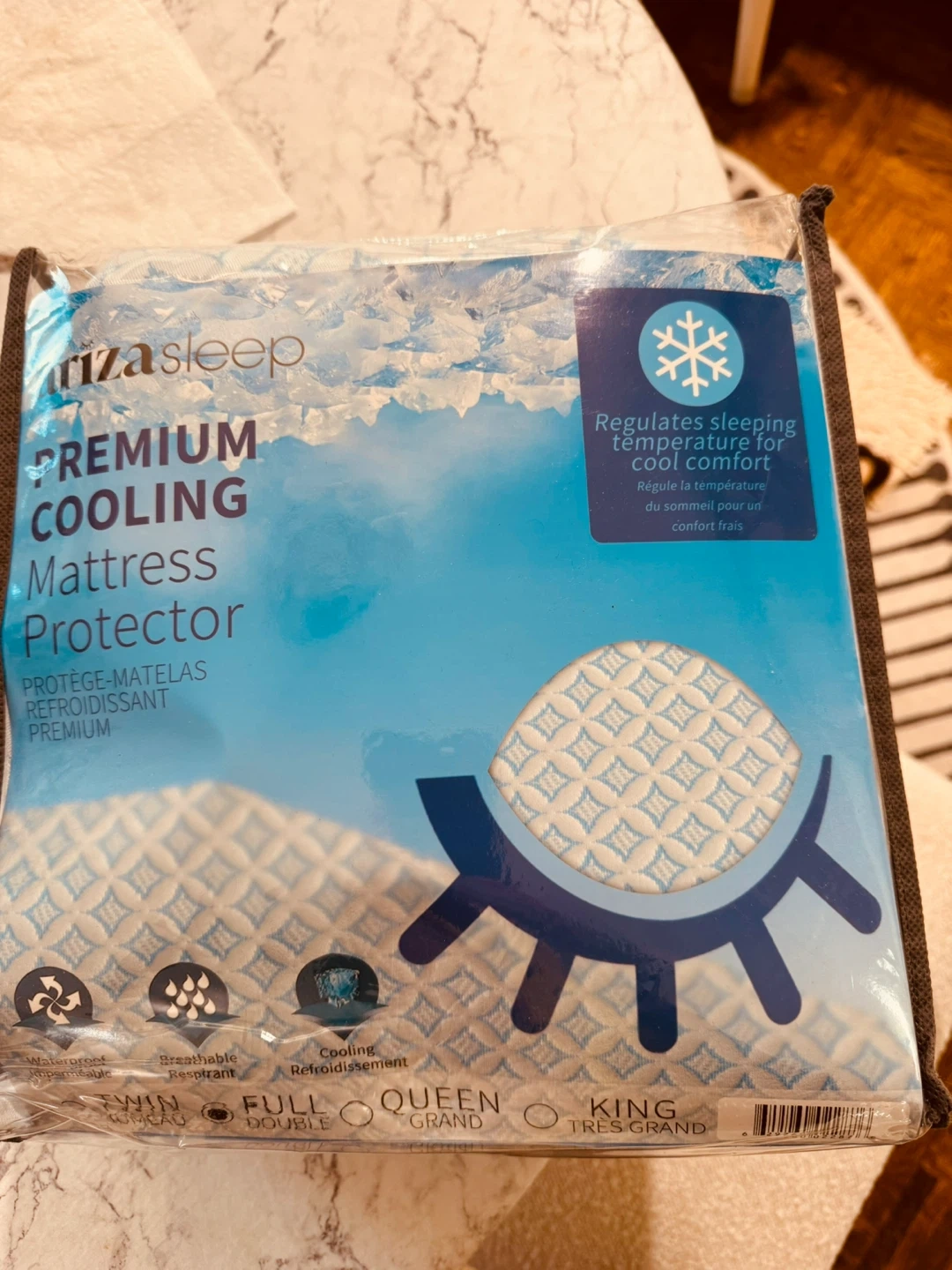 New in the package Keep your mattress clean and protected against normal wear and tear with this Ariza Sleep Premium Cooling Mattress Protector! It's designed to protect against allergens and pet dander, so you can sleep quietly on a soft cover that doesn't crinkle. This full-size protector has a 15" pocket that fits up to 18" deep and provides a cooling touch for a comfortable night's sleep