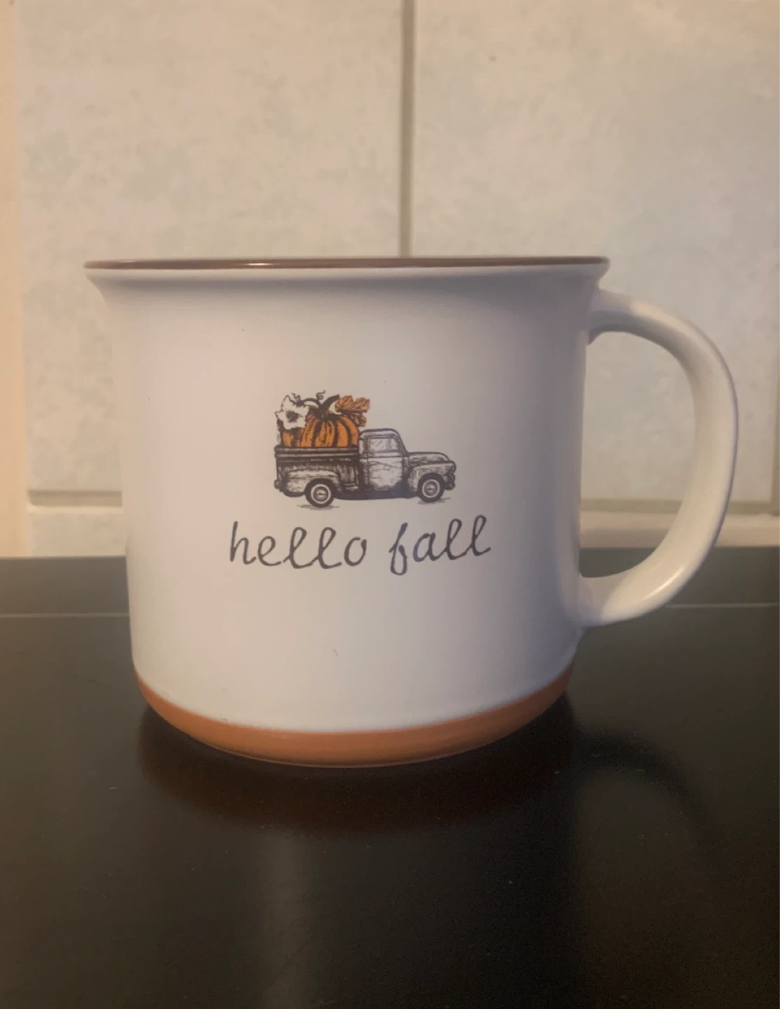 Market Finds MRKT mug with a cute "hello fall" design! It's microwave and dishwasher safe, and ready for your favourite autumn beverage.
