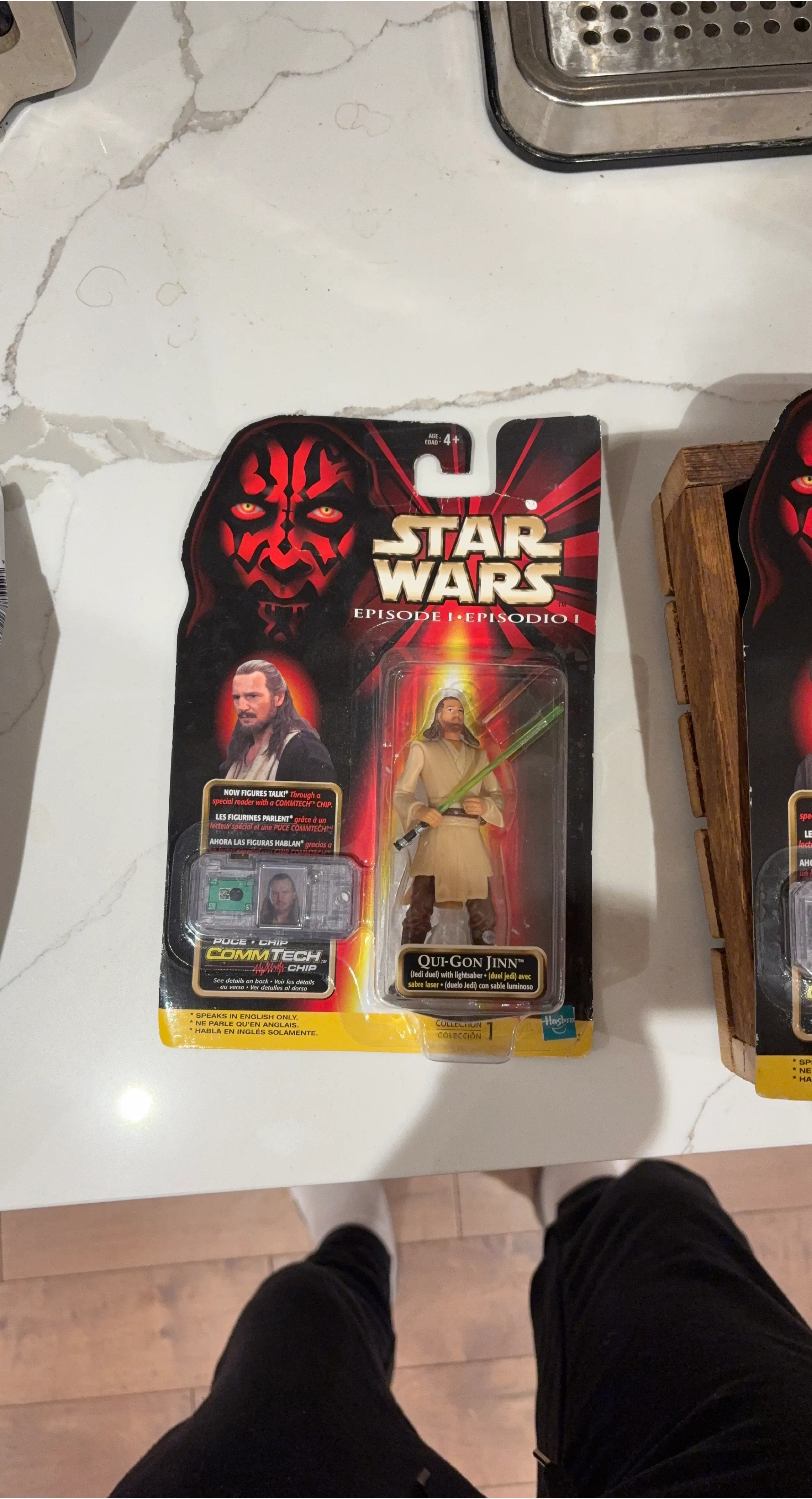 Selling a Star Wars Episode 1 Qui-Gon Jinn action figure! It's still in its original packaging. The figure features a COMMTECH chip and speaks in English.