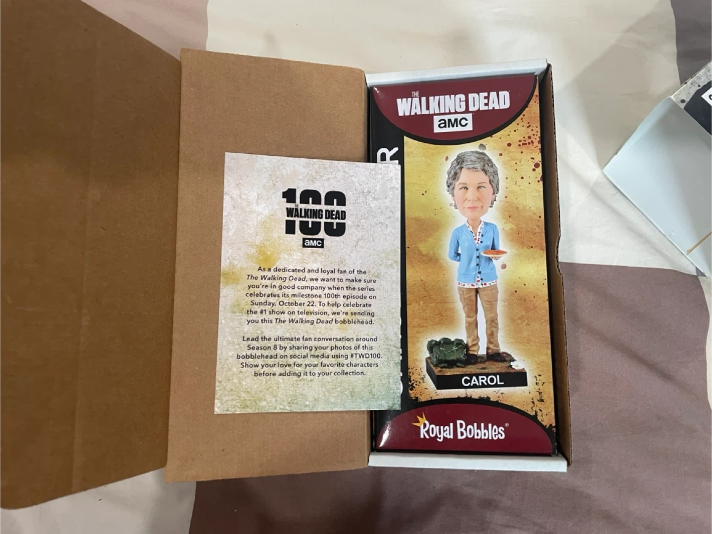 Selling a The Walking Dead Carol bobblehead by Royal Bobbles! It comes with its original box and packaging. This bobblehead commemorates the 100th episode of The Walking Dead.