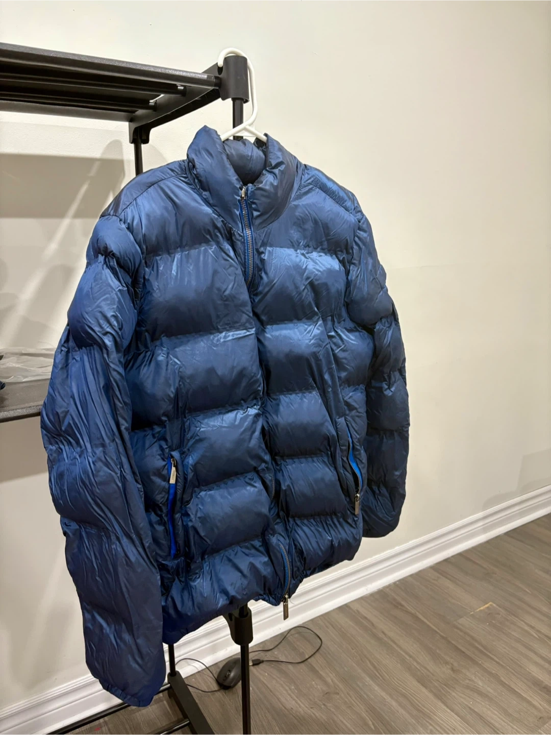 Selling a stylish blue puffer jacket. It's in great condition and perfect for staying warm during the colder months!