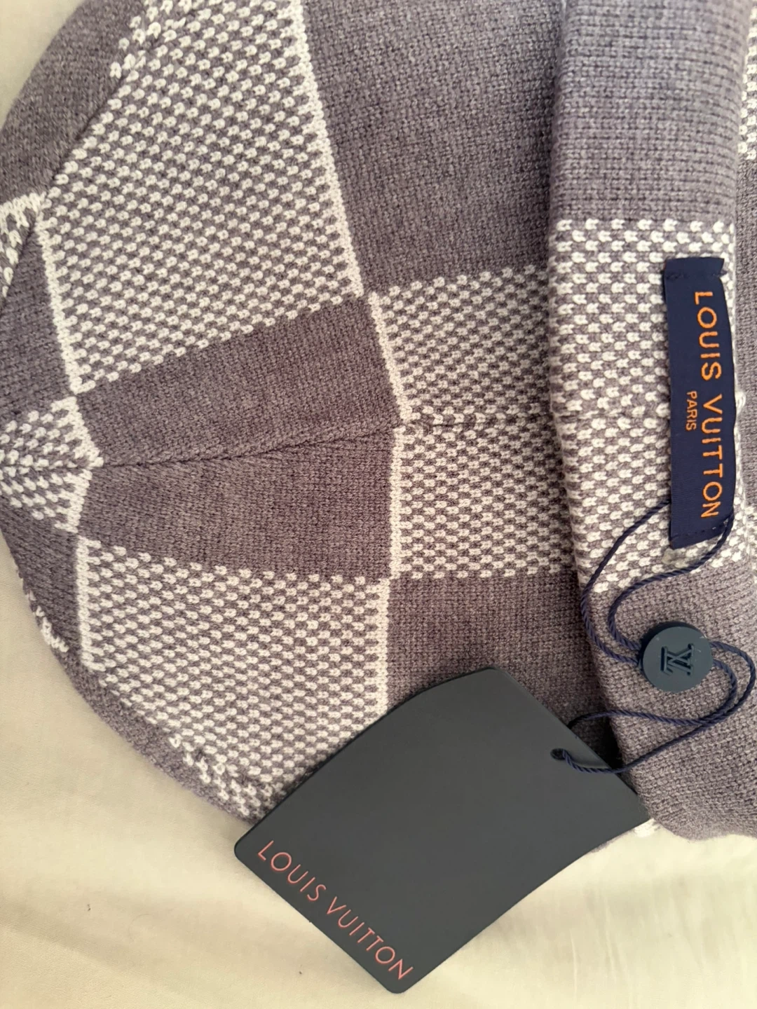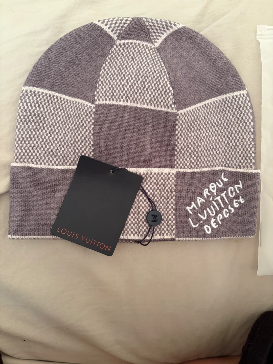Selling a brand new Louis Vuitton Damier beanie hat with tags still attached! It comes with the original packaging. Stylish and warm, perfect for the Canadian winter