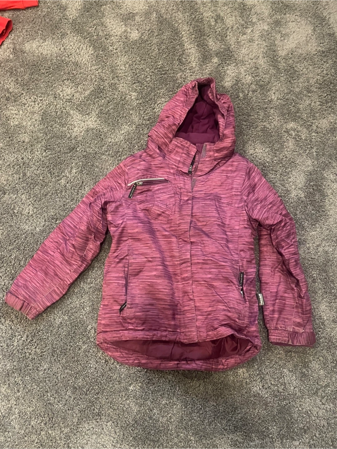 Here's a purple Alpine Tek winter jacket, perfect for keeping warm! It's a size M (10-12). Great for cold weather activities and has a water-resistant exterior.