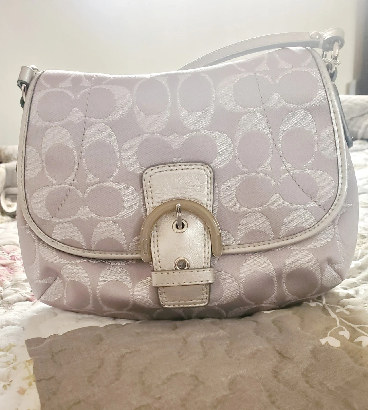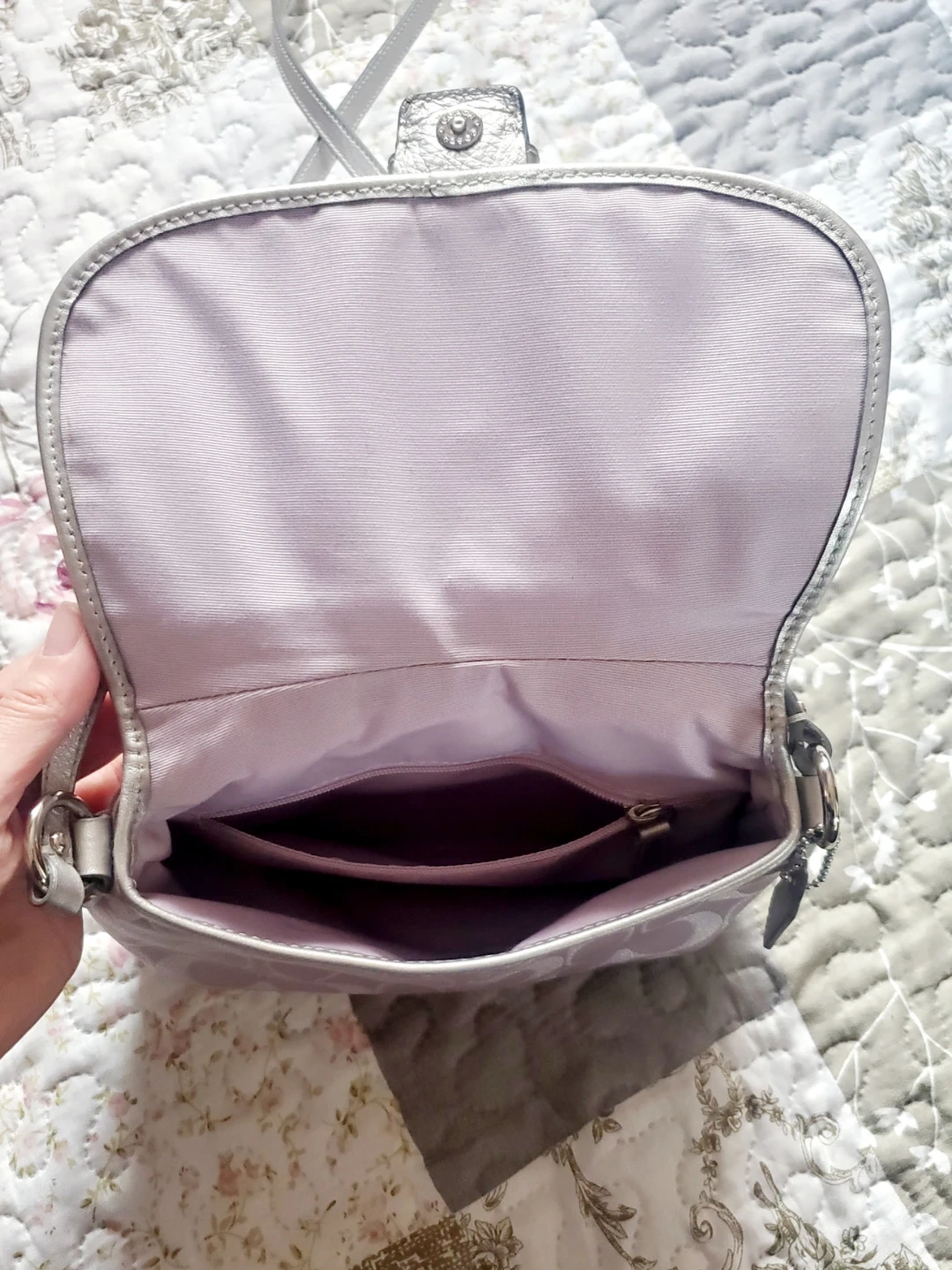 Selling a cute Coach crossbody bag! It's new and perfect for everyday use. The silver colour is really versatile and goes with everything. It features the classic Coach pattern. A stylish and practical addition to your wardrobe!