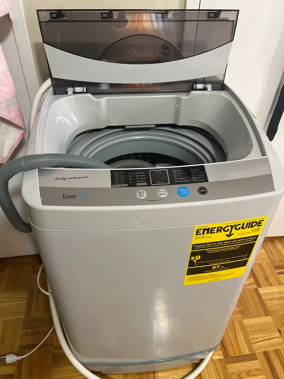 Easy Life portable fully automatic washing machine. Good for apartment. It's in great condition and ready to use. With extended drain hose, faucet hose and faucet adapter.