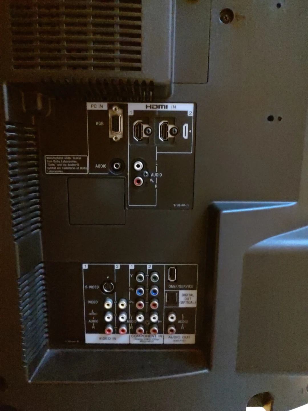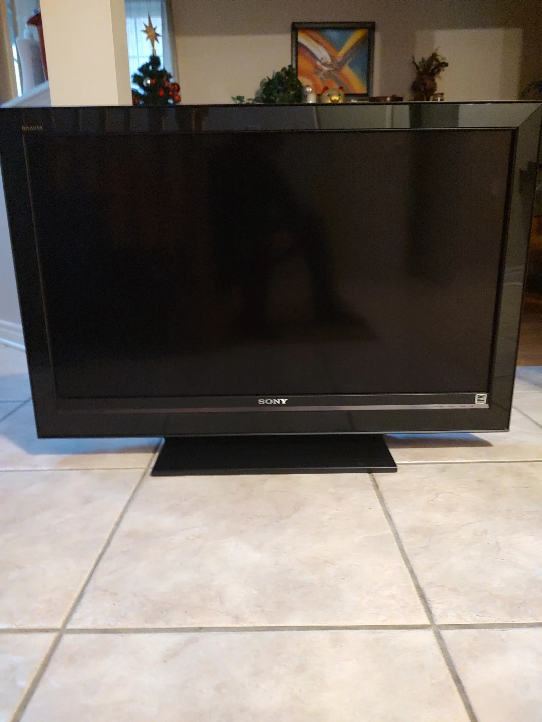 Selling a Sony Bravia LCD Digital Colour TV, model KDL-40V3000. It's a 40-inch TV. The manufacturing date is January 2008. Comes with a power cord. It's in good condition. There's a minor scratch mark on the base (not noticeable unless you're looking for it; definitely won't notice it if you're watching TV).