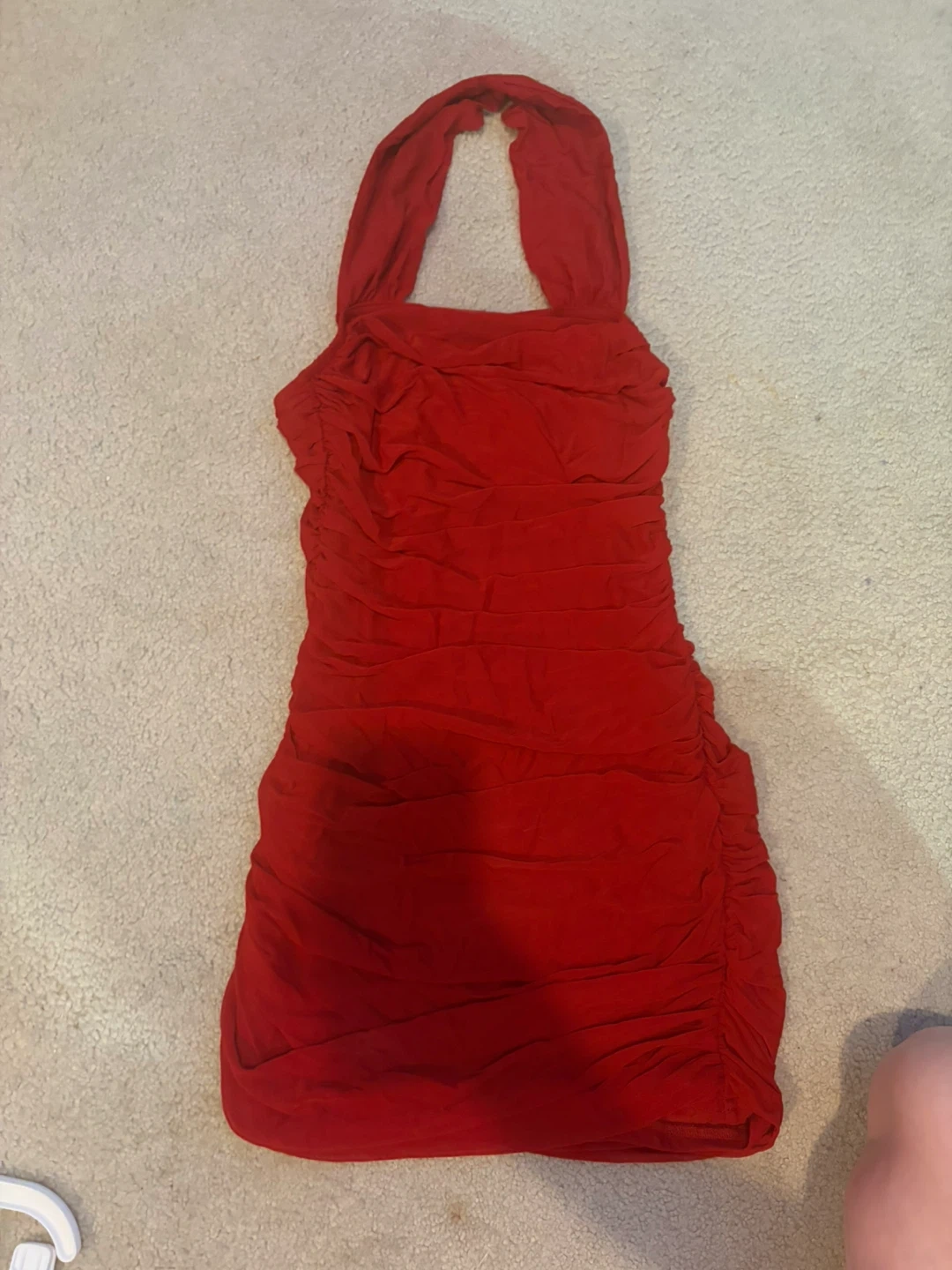 Two red dresses for sale! One is a red plaid dress with straps, and the other is a ruched red dress. Both are in great condition! Perfect for holiday occasions, both only worn once. Both size small. Plaid is ardene and plain red is unknown.