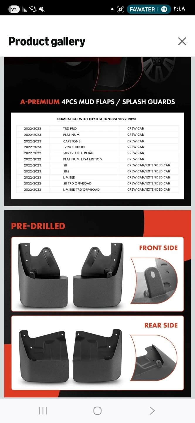Selling a set of A-Premium mud flaps/splash guards. These are compatible with Toyota Tundra models from 2022-2023. They are made of PP + TPO (Polypropylene + Thermoplastic Polyolefin), making them anti-corrosion, solid, durable, and tough against wear. They are also anti-crack at low temperatures. The box is included!