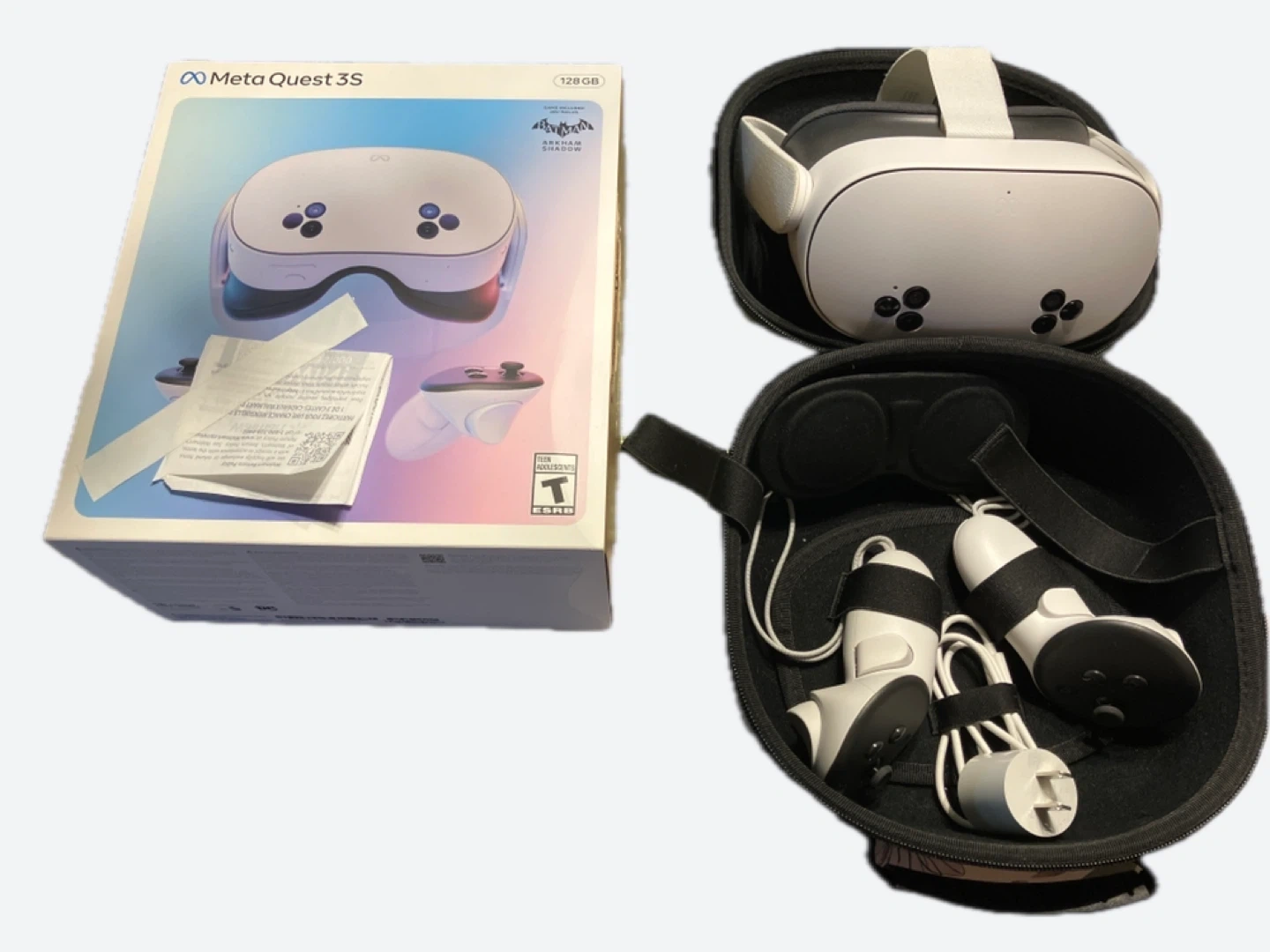 Selling a Meta Quest 3S VR headset with 128 GB of storage. It comes with the original box and an additional carrying case. Perfect for gaming and immersive experiences! There’s no scratches on the lenses.