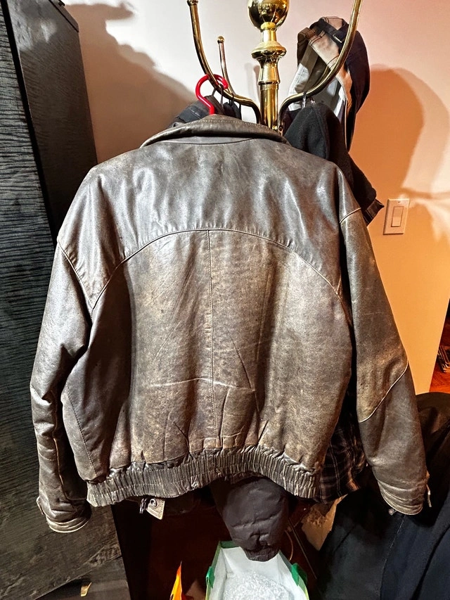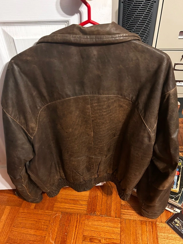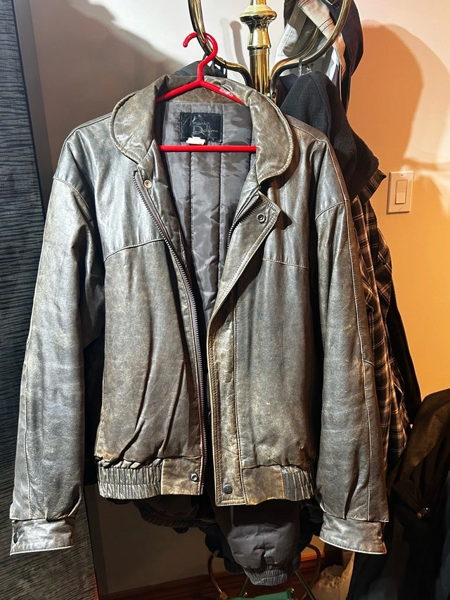 Vintage Mario Delfino leather jacket in good condition, size 40. This rugged yet stylish jacket features a classic bomber design with a comfortable fit, perfect for adding a touch of vintage flair to any outfit. Please note that this is a used item, and its condition reflects its history, adding to its unique character. Pickup in East York. Cash only.