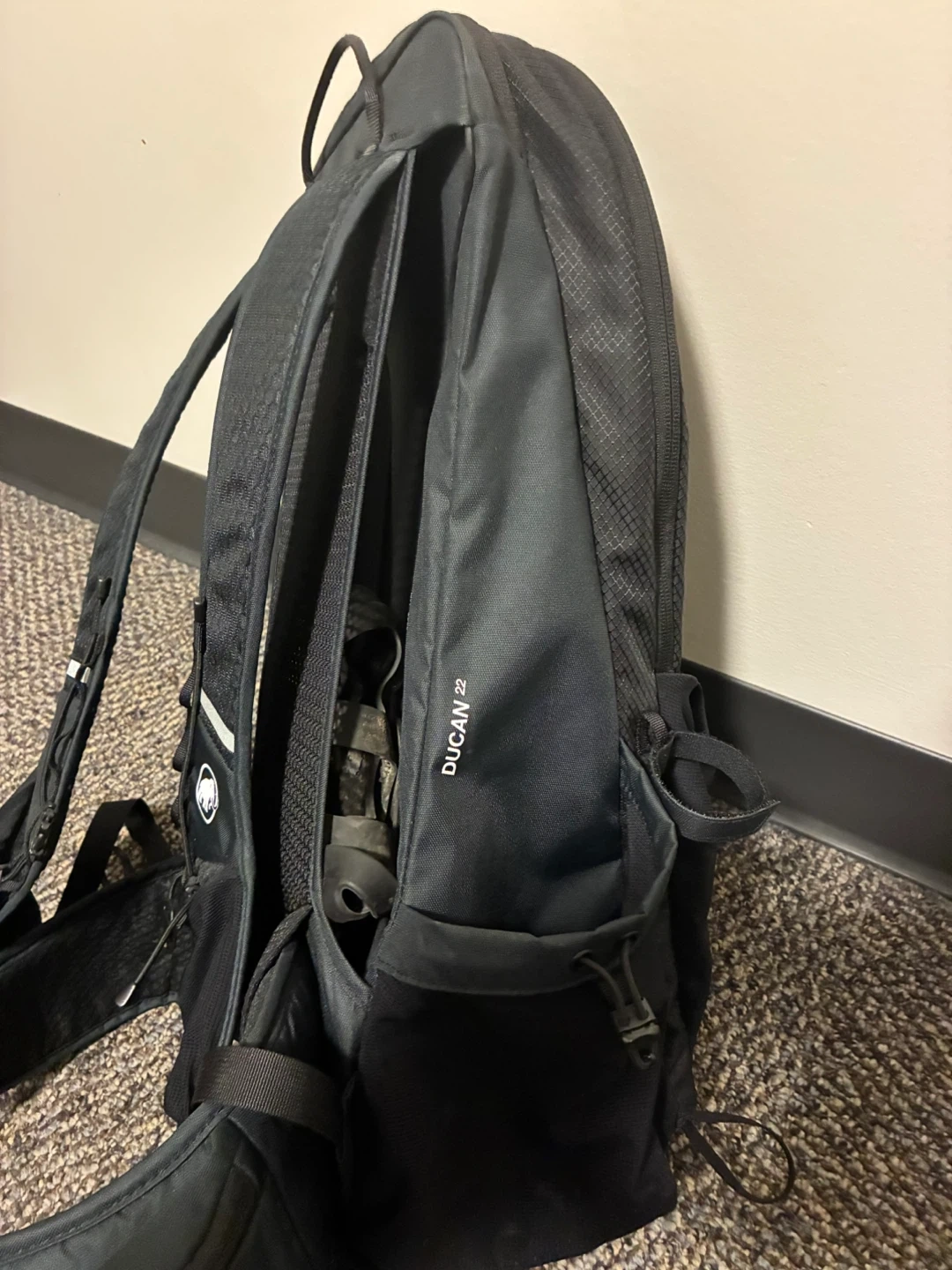 Selling a Mammut Ducan 22 backpack in black. It's in great condition and ready for your next adventure! Features include the Mammut logo and Contact Stream technology for comfortable carrying