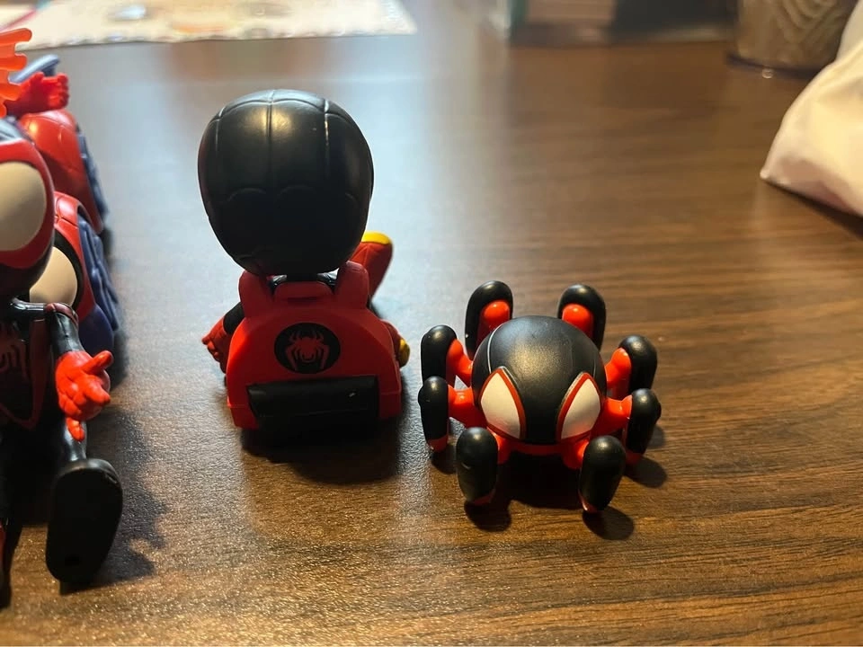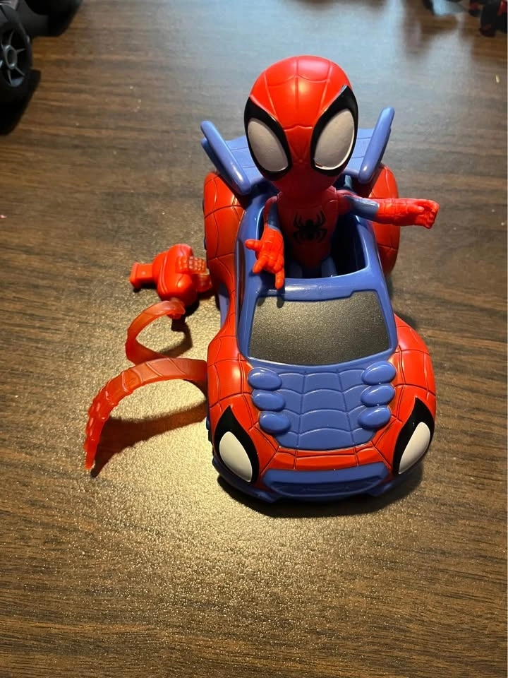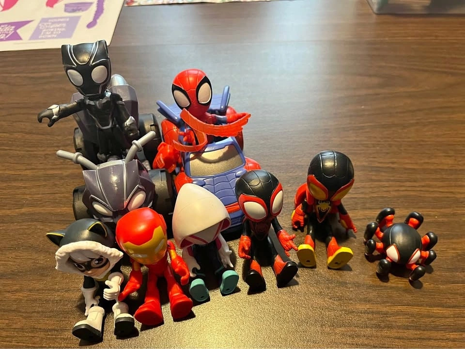 Two vehicles with characters inside, the spider man has a web shooter! Additional friends included!! The price of one character alone can be $15.