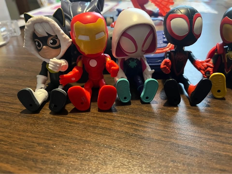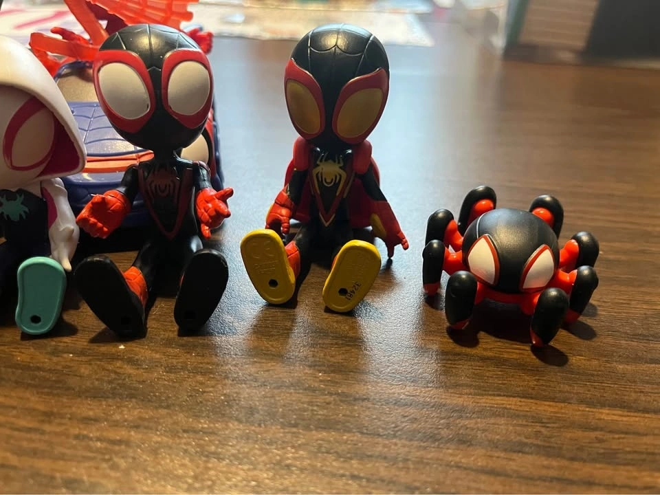 Two vehicles with characters inside, the spider man has a web shooter! Additional friends included!! The price of one character alone can be $15.