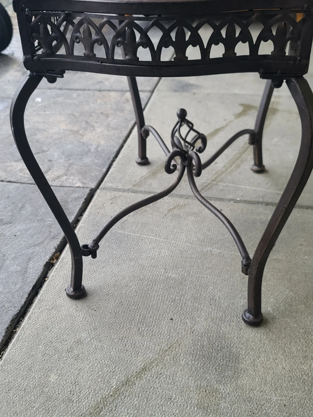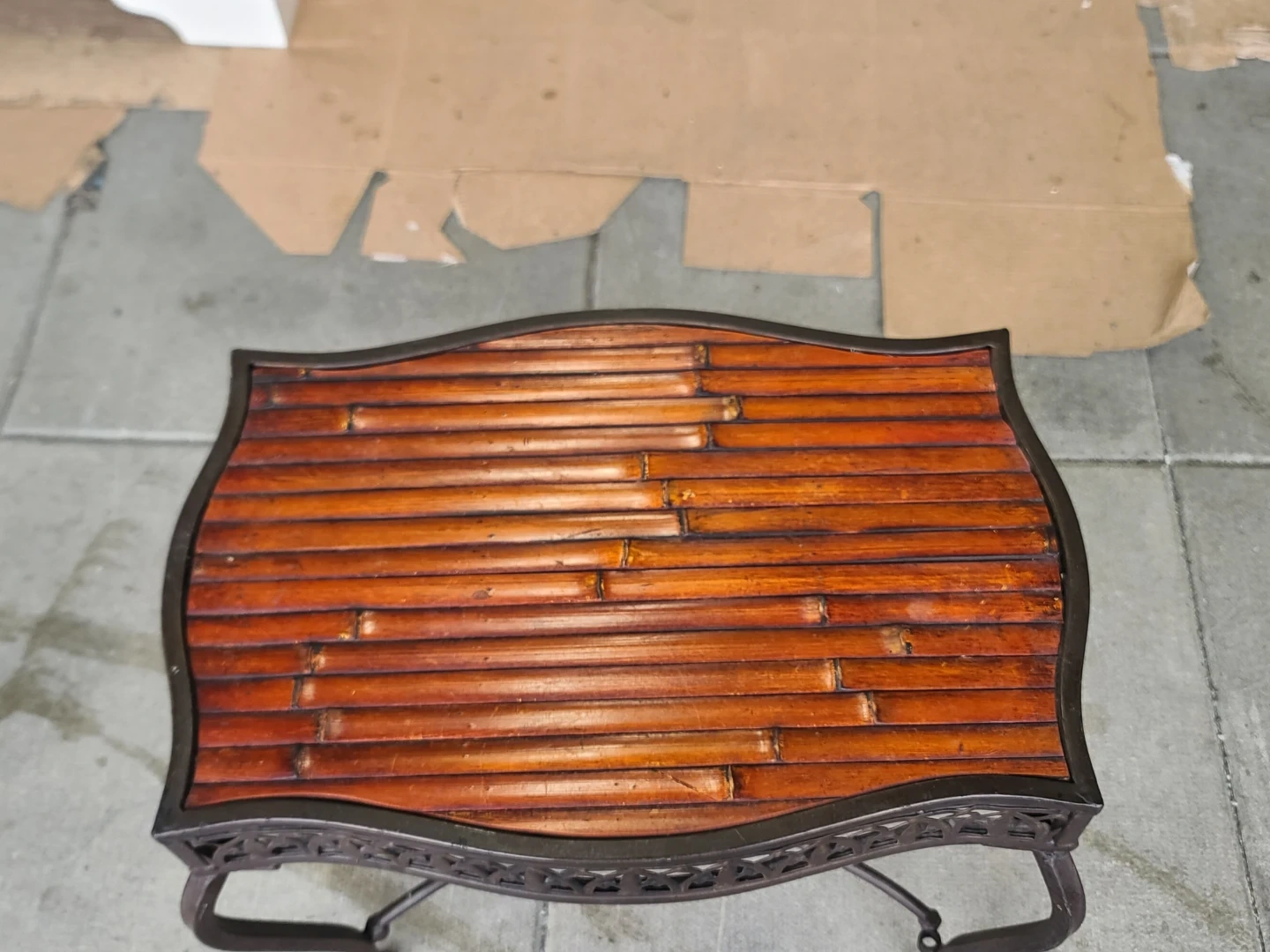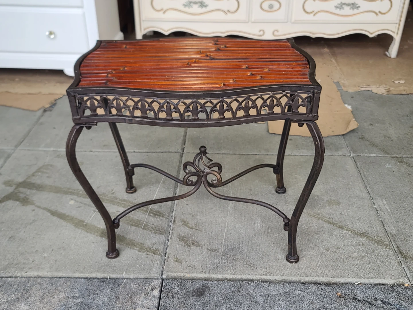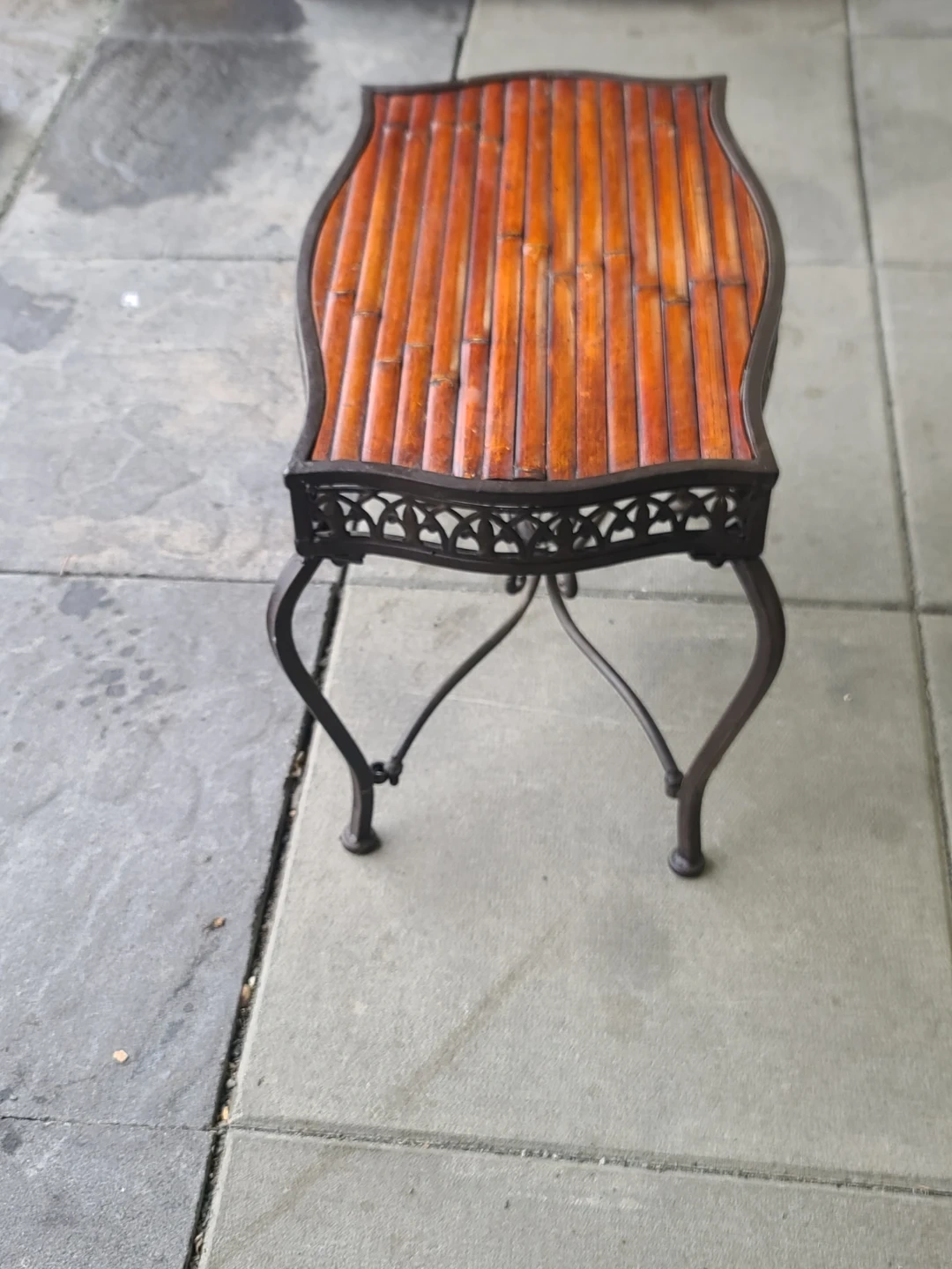 A cute accent table with a bamboo top and decorative metal legs. It's perfect for adding a touch of style to any room! Viewing and pickup by appointment.