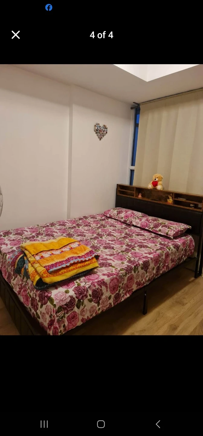 Selling a queen size bed frame and mattress that comes with built-in LED lights in the headboard! It's in great condition and would be a stylish addition to any bedroom. Perfect for creating a cozy and modern atmosphere