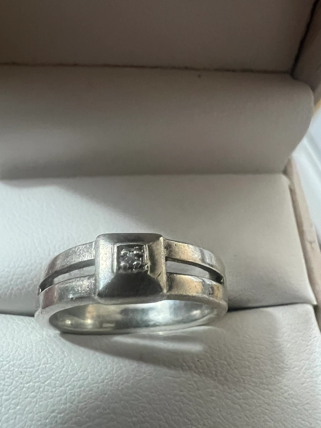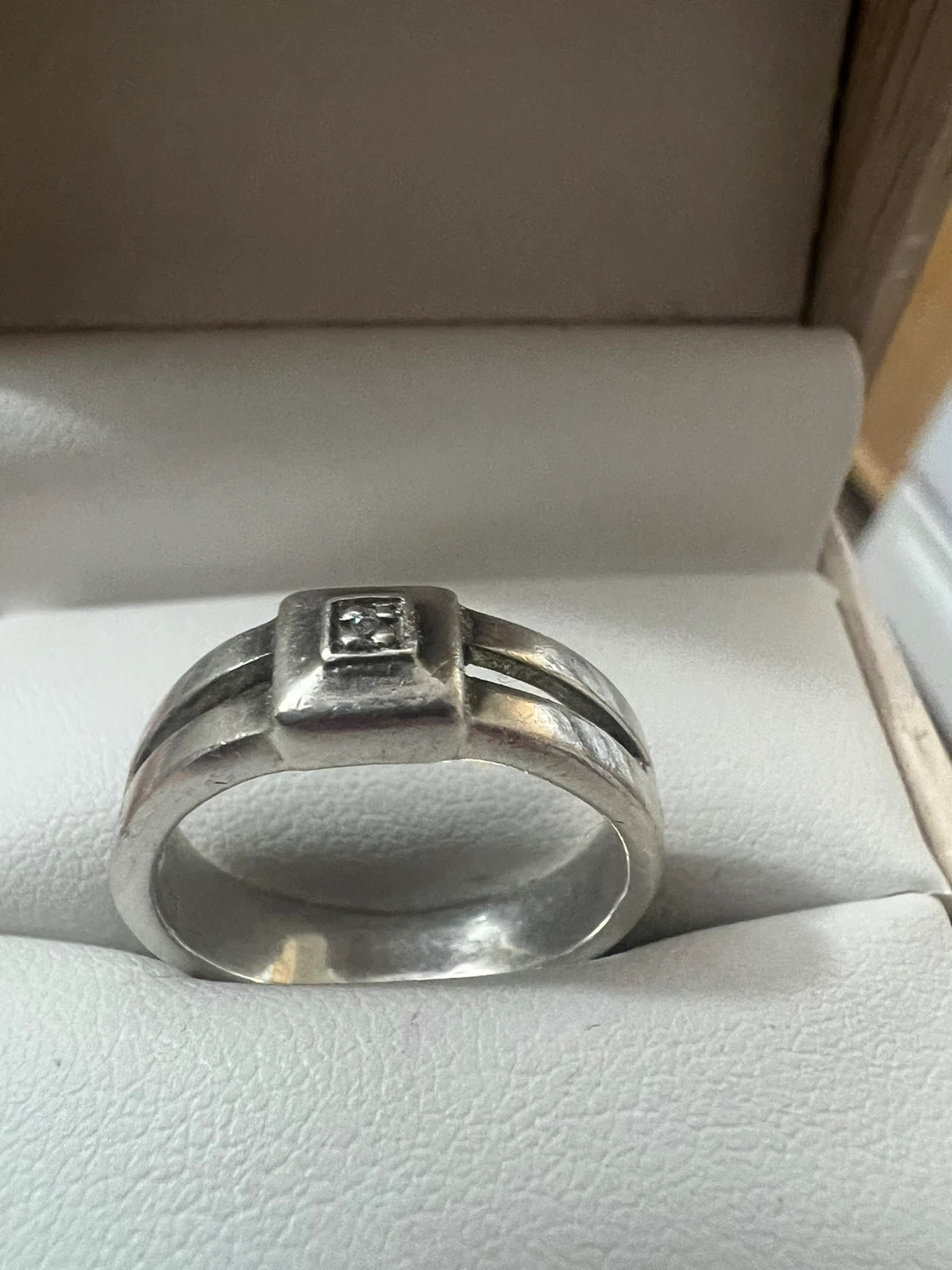 Selling a sterling silver ring, marked with "925" indicating its silver content. It's in good condition and ready for a new owner!