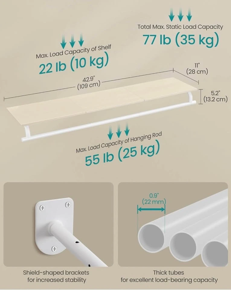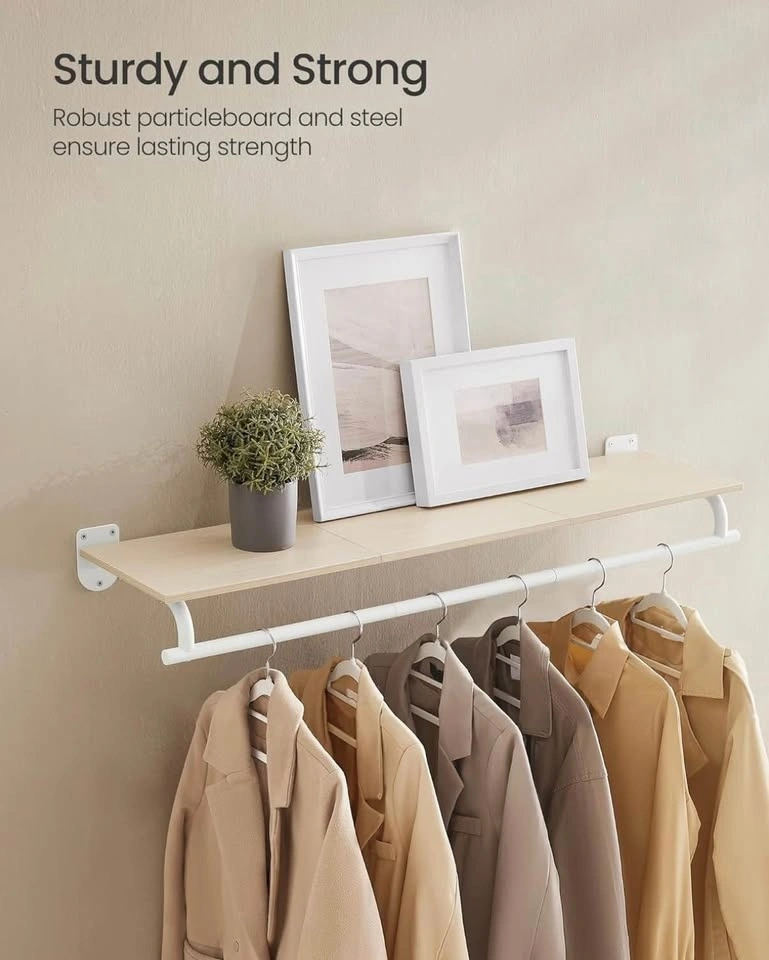 Stylish wall-mounted clothes rack with a top shelf and hanging rod β perfect for entryway, bedroom, or closet.