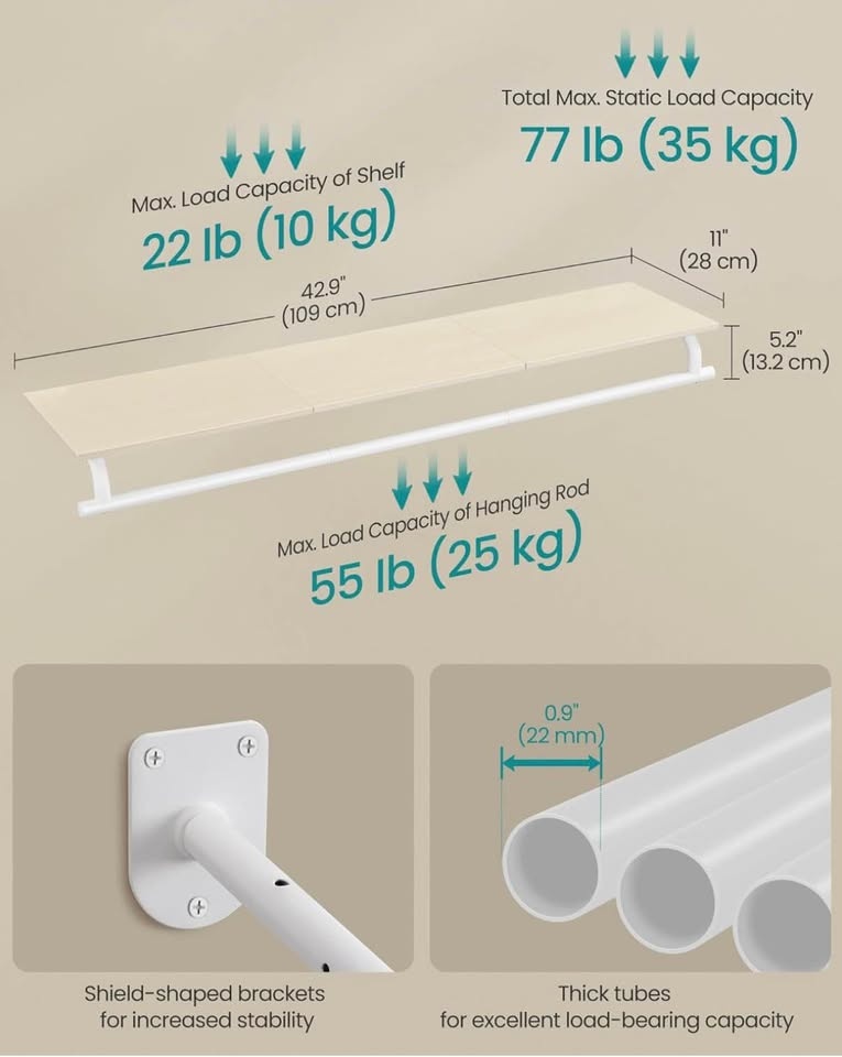 Stylish wall-mounted clothes rack with a top shelf and hanging rod β perfect for entryway, bedroom, or closet.