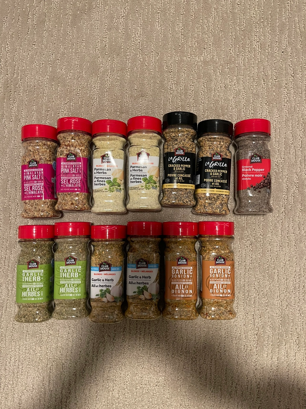 Selling Club House spices! This includes a variety of blends like Himalayan Pink Salt, Parmesan & Herbs, Cracked Pepper & Garlic, Ground Black Pepper, Garlic Herb, and Garlic & Onion. Perfect for adding flavour to any dish!