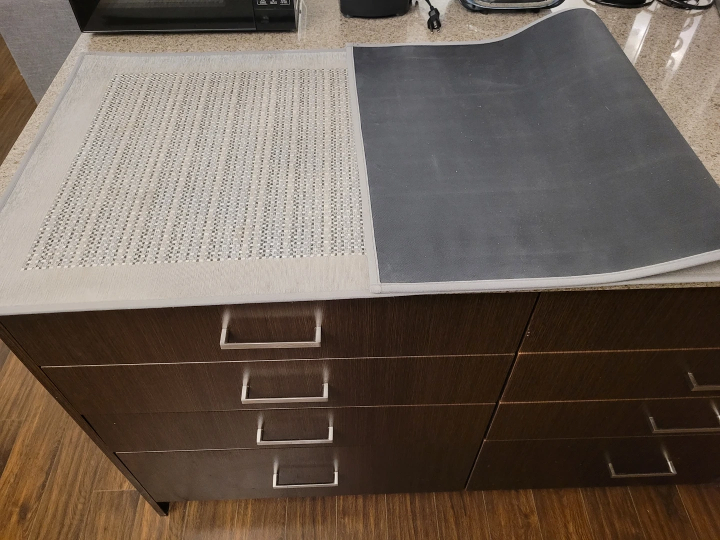 Selling a grey floor mat, perfect for protecting your surfaces or adding a touch of style! It measures approximately 24 inches by 59 inches.