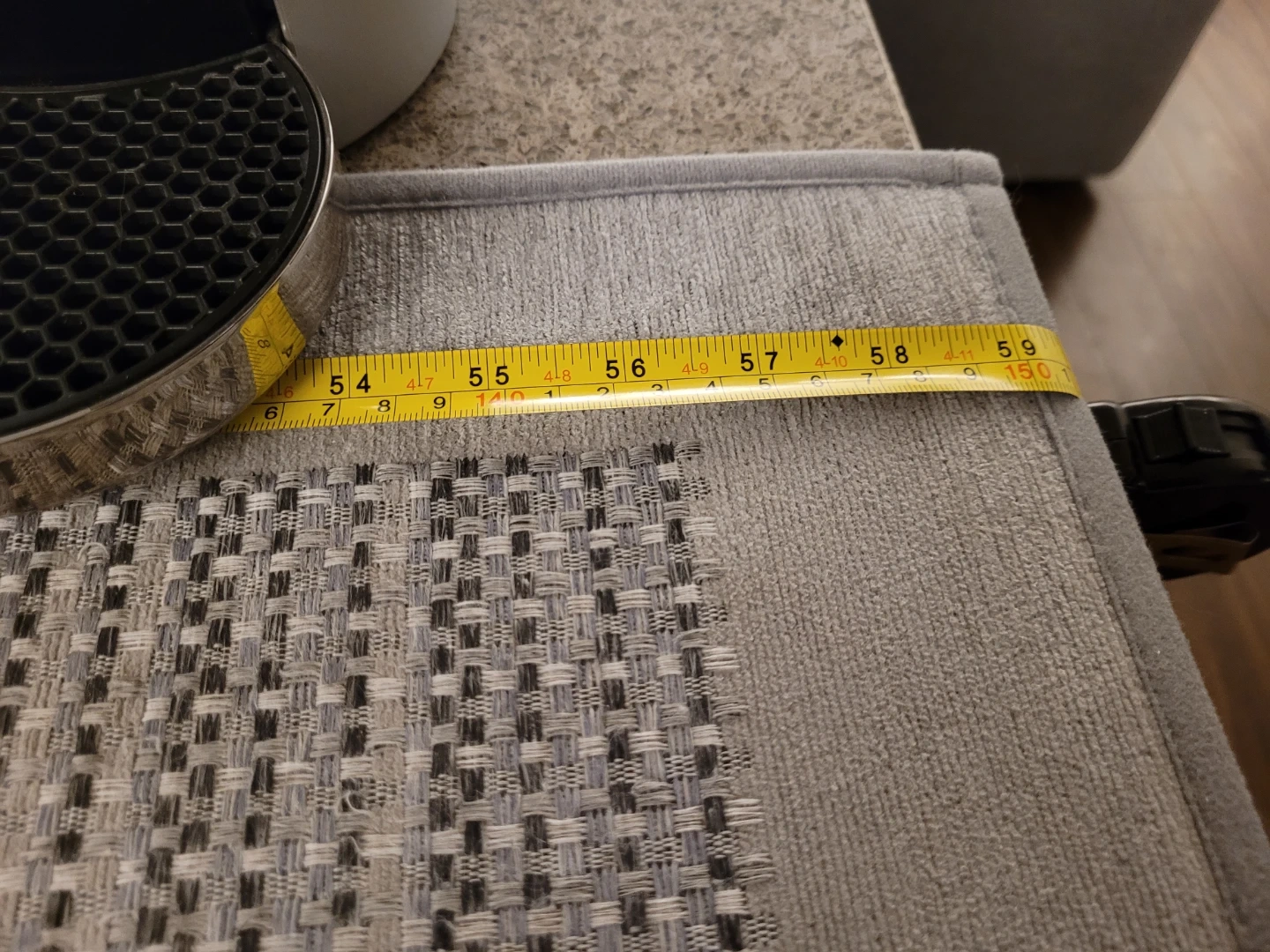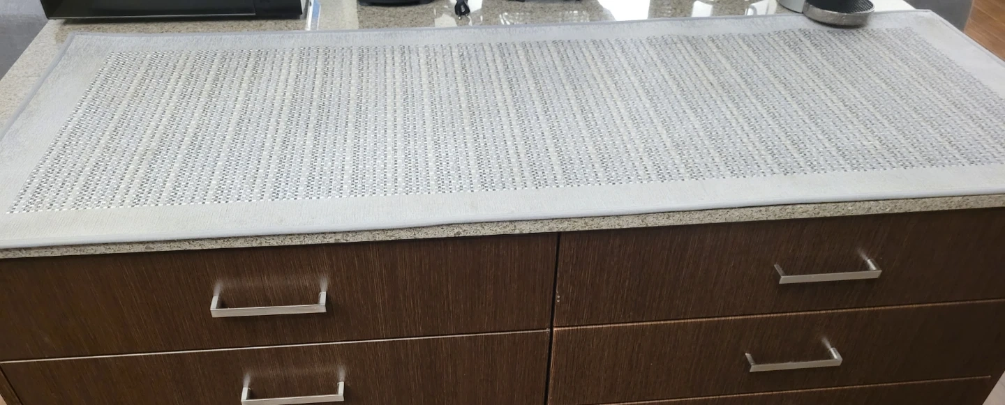 Selling a grey floor mat, perfect for protecting your surfaces or adding a touch of style! It measures approximately 24 inches by 59 inches.