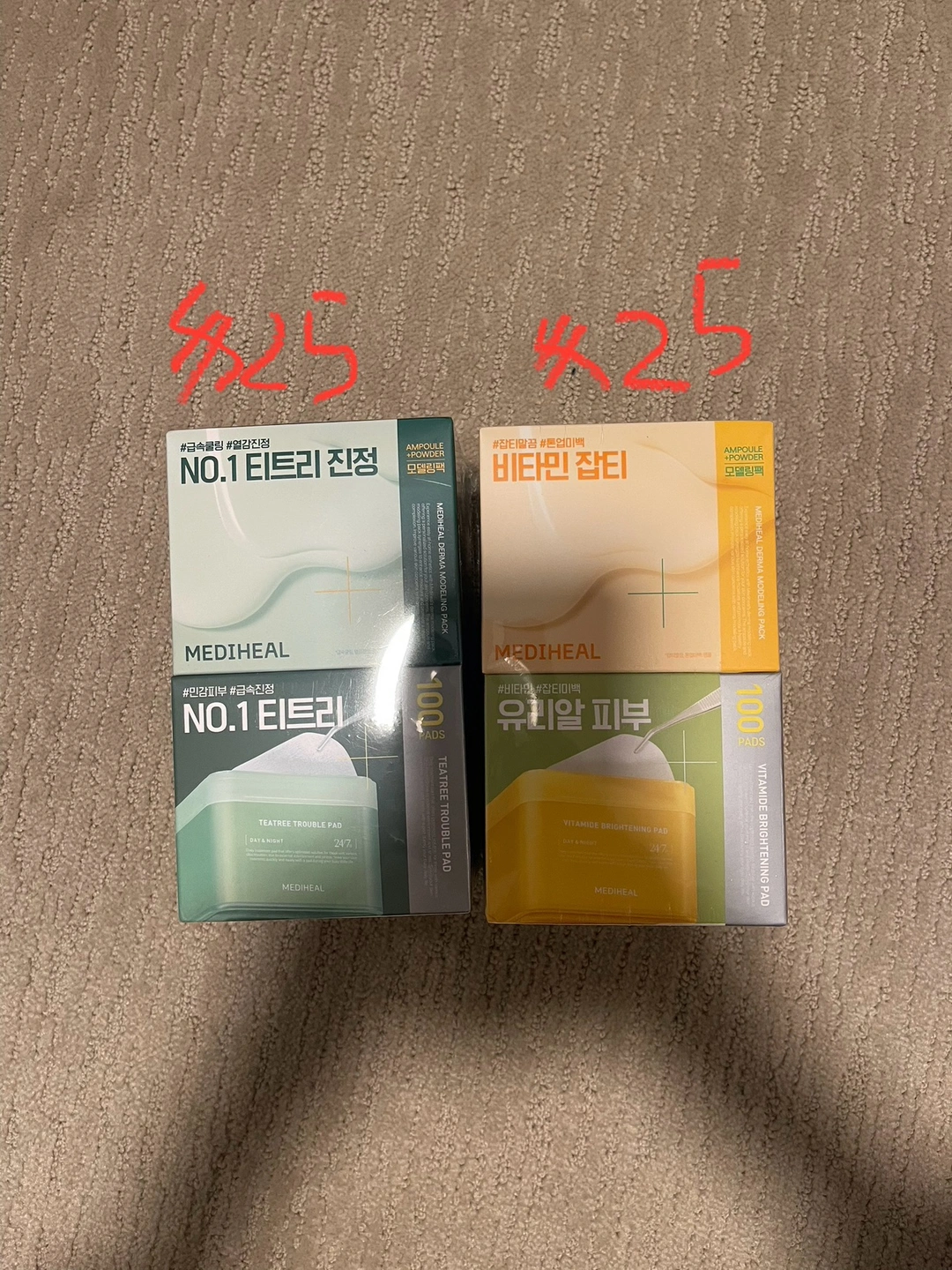 - Vitamide Brightening Pad (yellow box) for clear skin