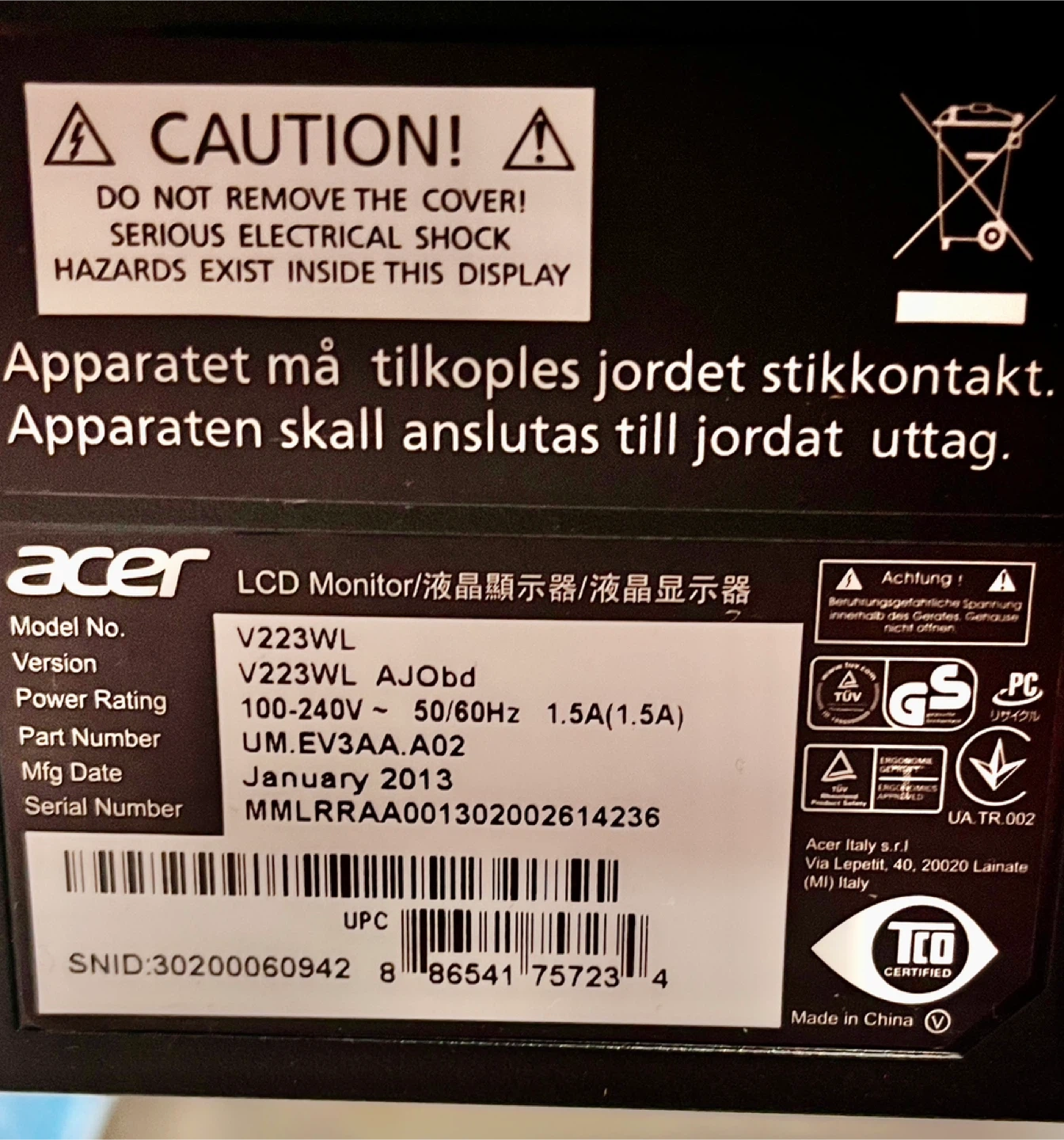 Selling an Acer LCD monitor, model V223WL! It's a 22-inch display that's perfect for a home office or as a second screen. It has both DVI-D and VGA inputs, so it's compatible with a variety of devices. No scratches on screen. Cash only