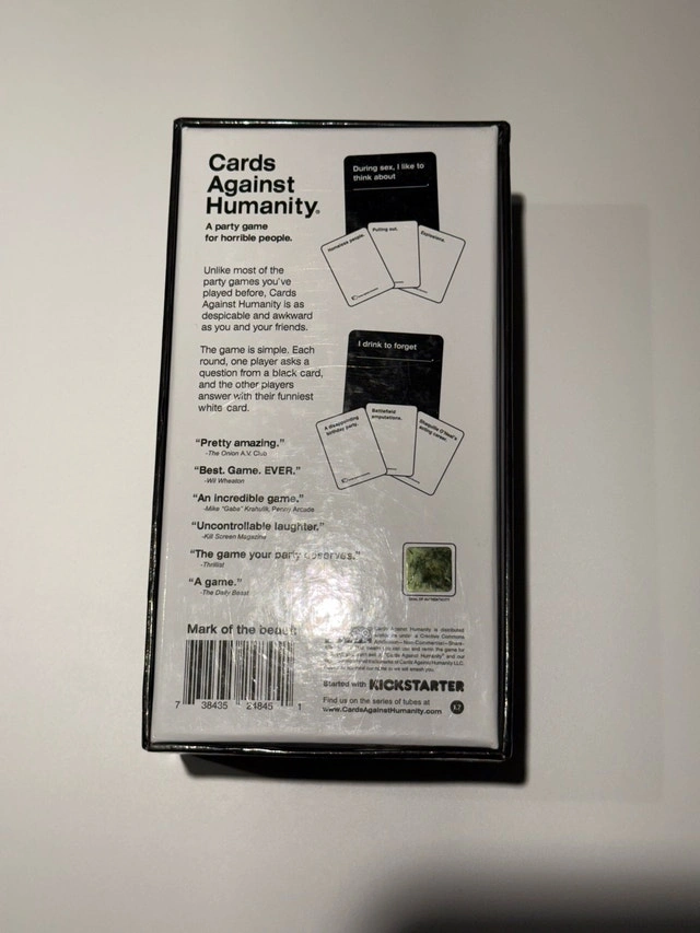 Cards Against Humanity base game in excellent condition. Includes original box and rule book.