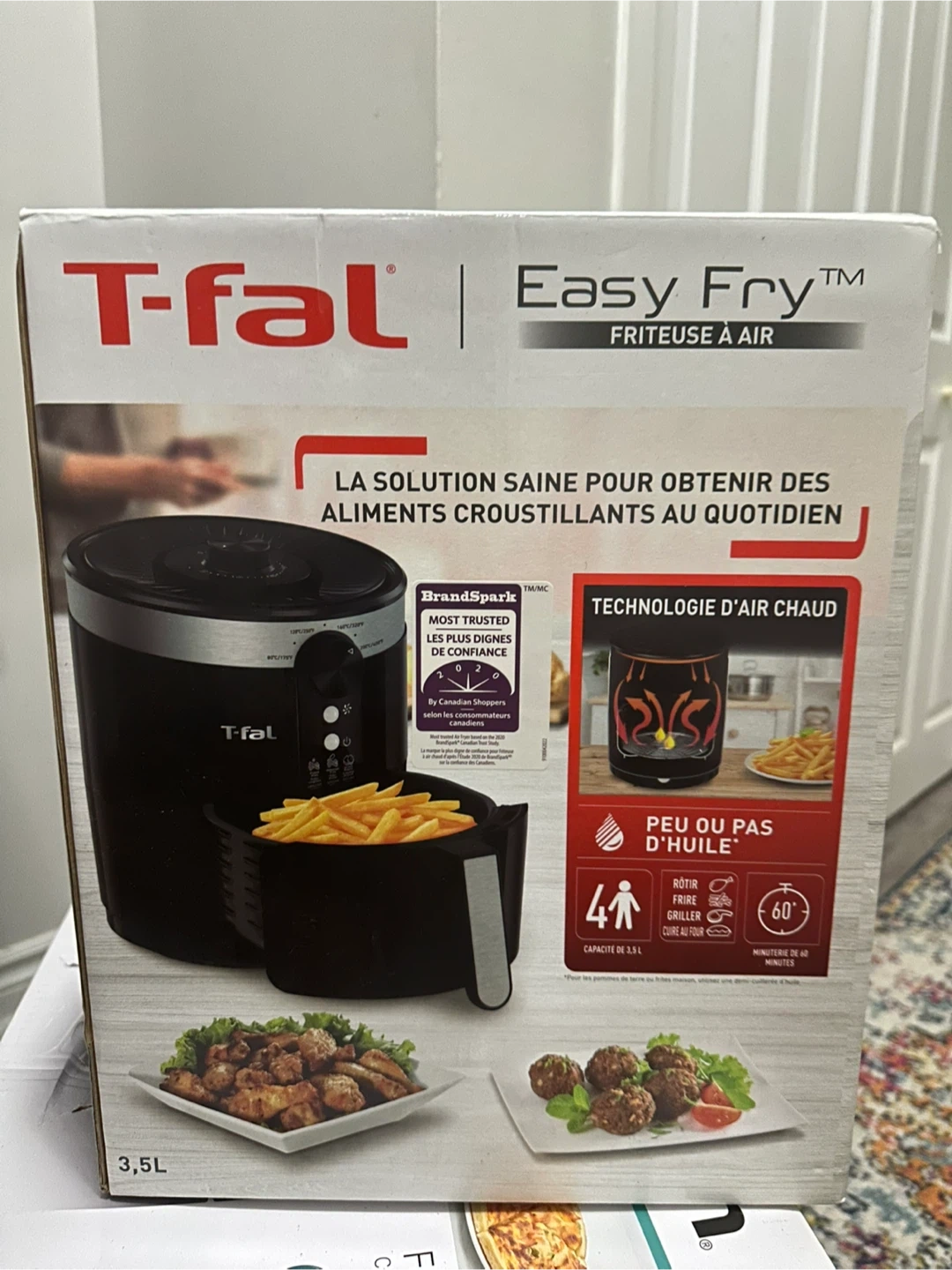 Selling a T-fal Easy Fry air fryer in excellent condition! This air fryer has a 3.5L capacity, perfect for up to 4 servings. It features adjustable temperature control up to 200°C and a timer that can be set for up to 60 minutes. It also boasts a non-stick basket for easy cleaning! Box included.