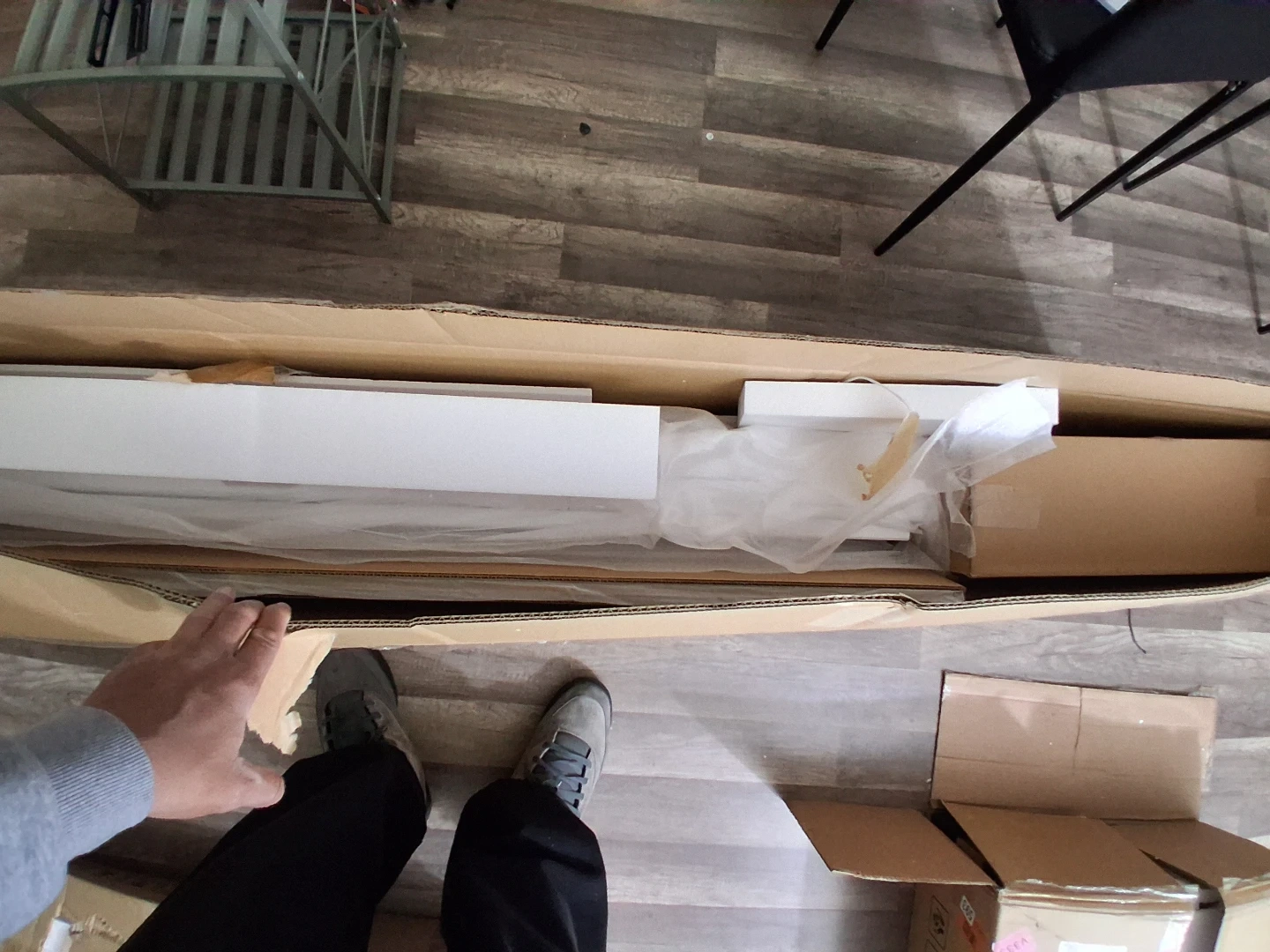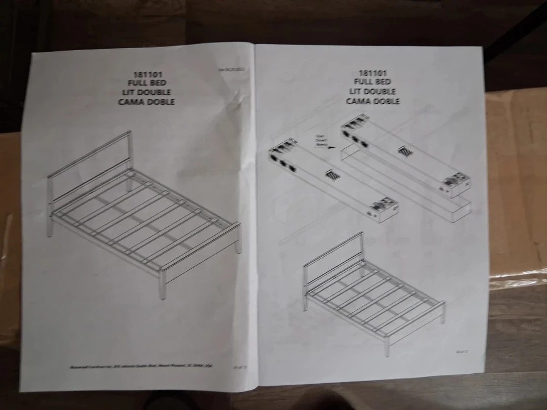 Selling a bed frame that's still in its original packaging and unassembled. All components and instructions are included, so it's ready for you to put together. The bed frame is white and comes with all the necessary hardware