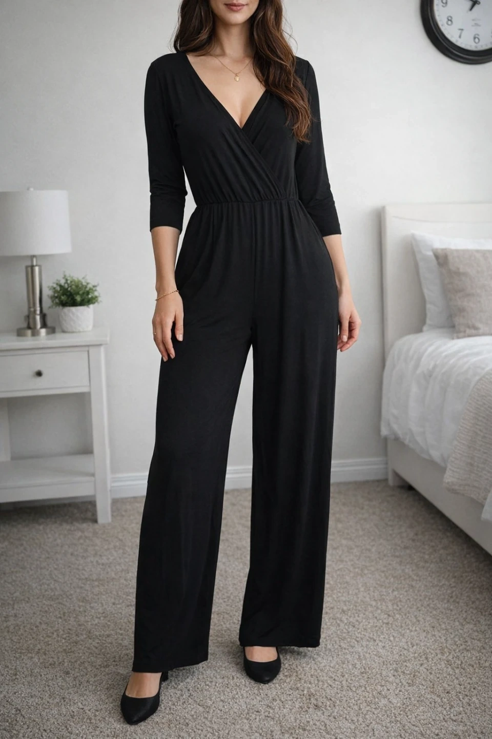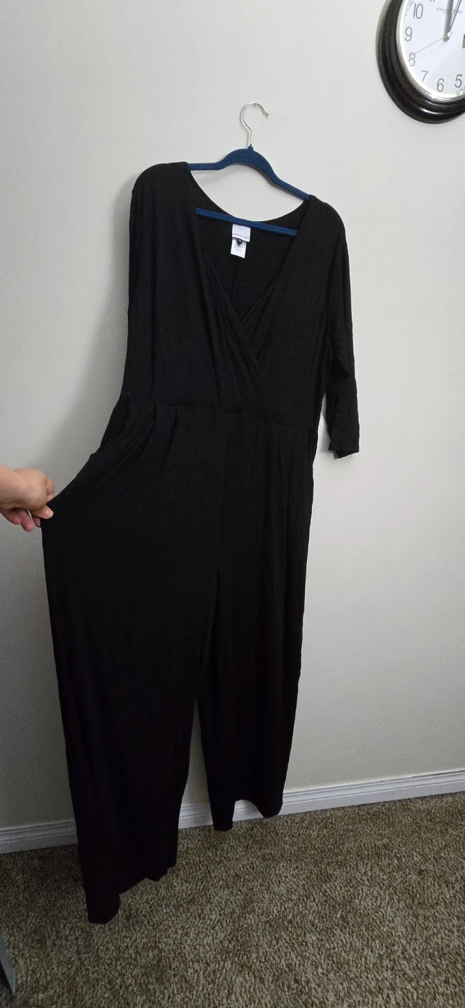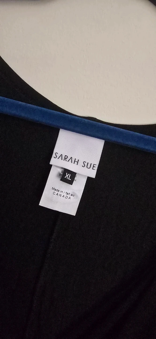 I'm selling a Sarah Sue black jumpsuit in size XL. It's in great condition and made in Canada! It features a flattering wrap-style top and convenient pockets.