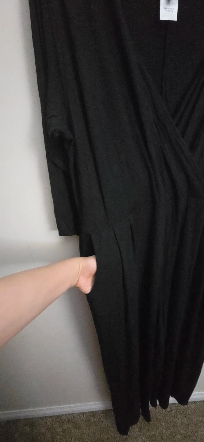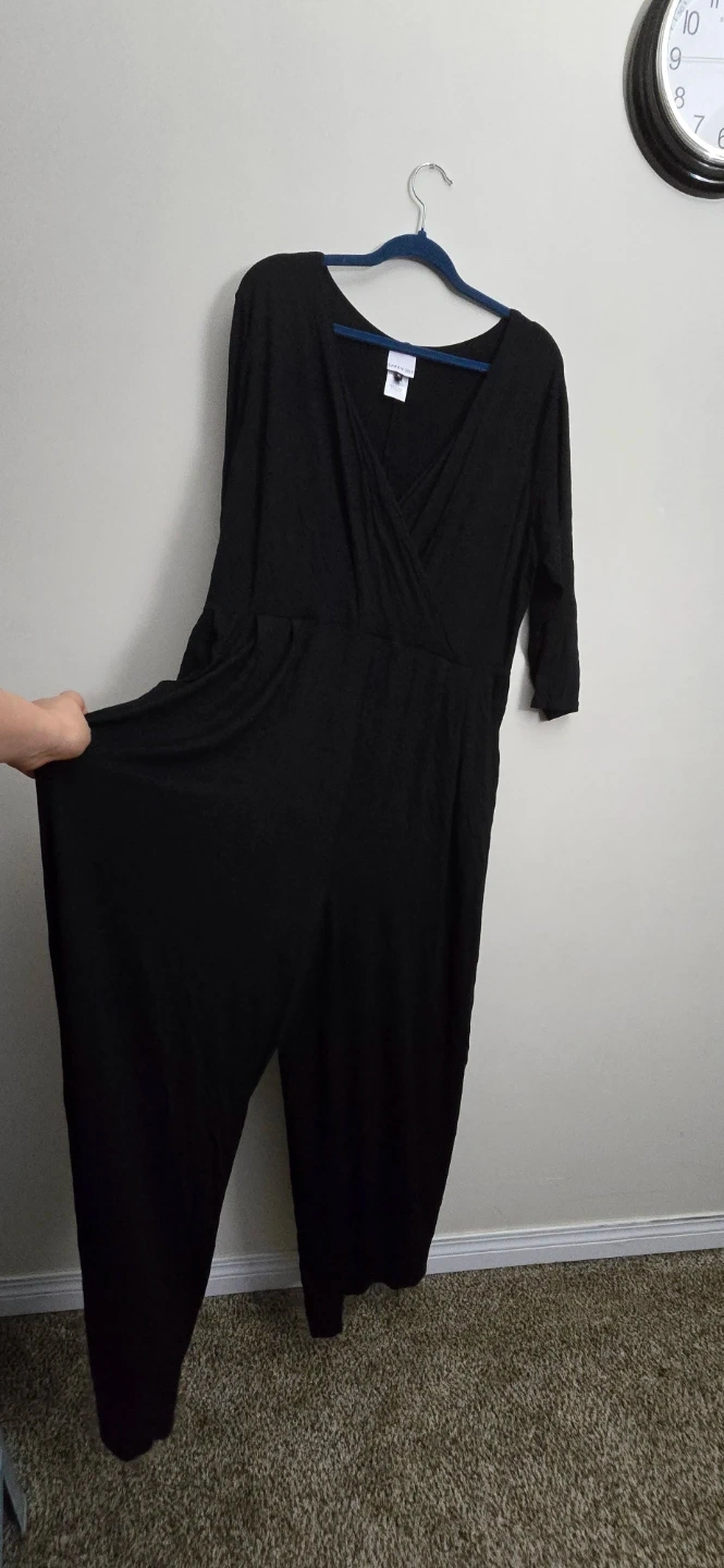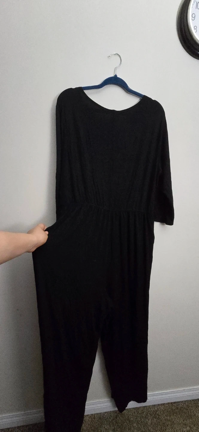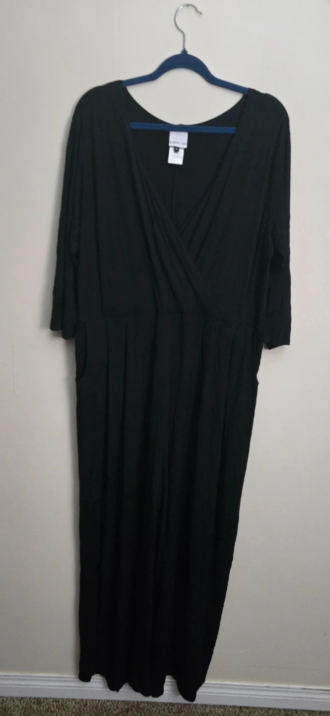 I'm selling a Sarah Sue black jumpsuit in size XL. It's in great condition and made in Canada! It features a flattering wrap-style top and convenient pockets.
